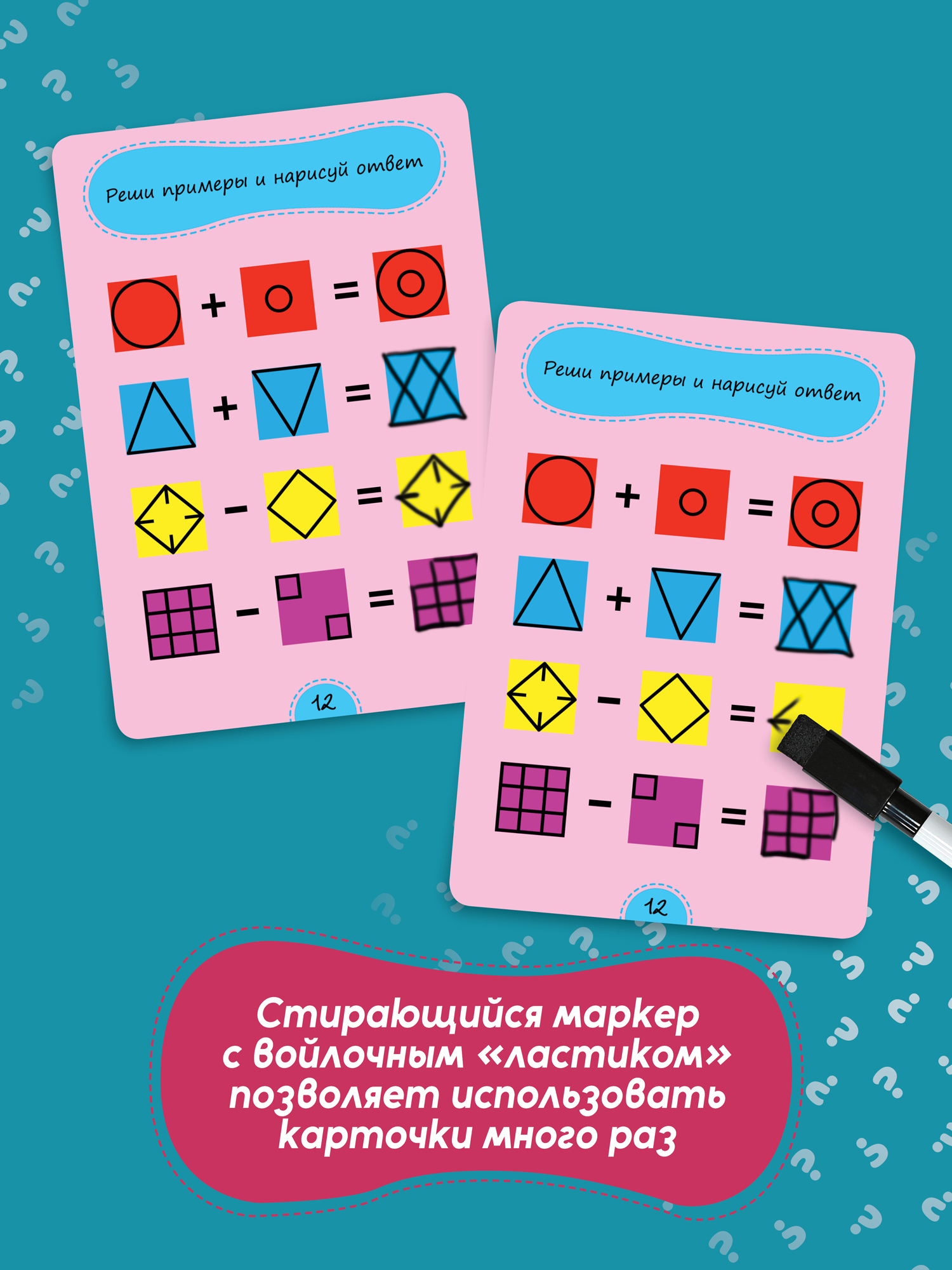 Благодаря многоразовым карточкам и маркеру на водной основе можно выполнять задания снова и снова.