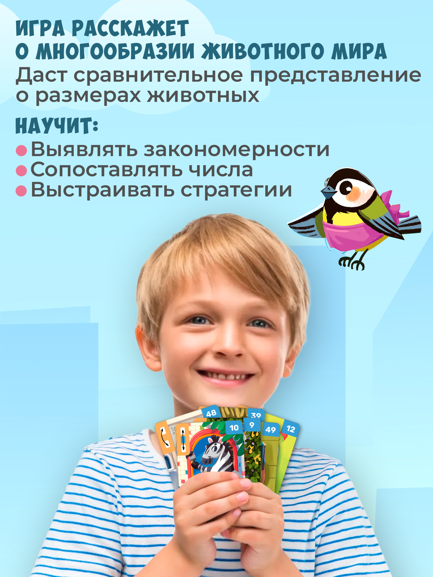 «Многоэтажка» показывает, какие животные обитают на нашей планете, и даёт сравнительное представление об их размере и весе. Игра учит выявлять закономерности, сопоставлять числа и выстраивать стратегии.
