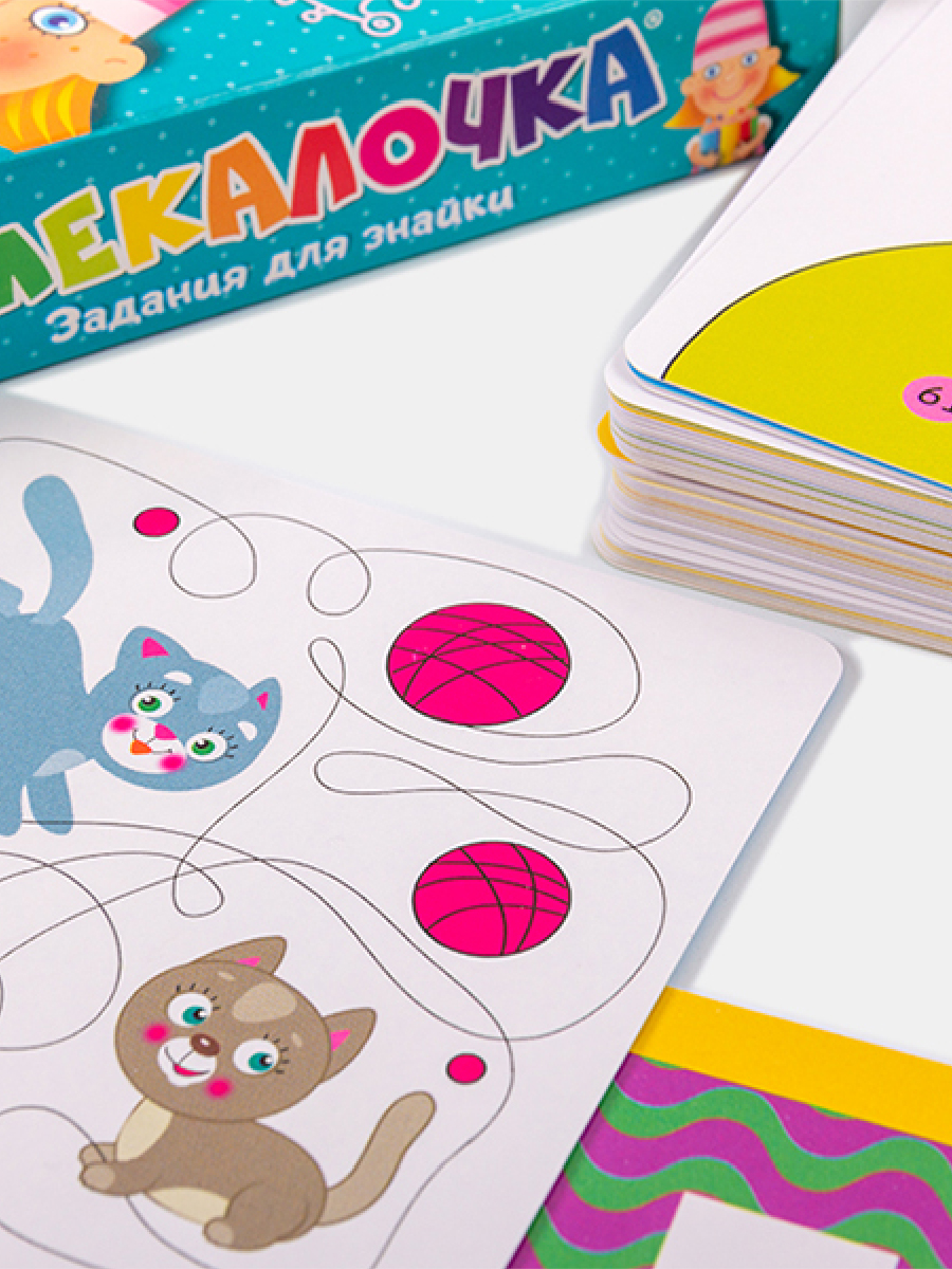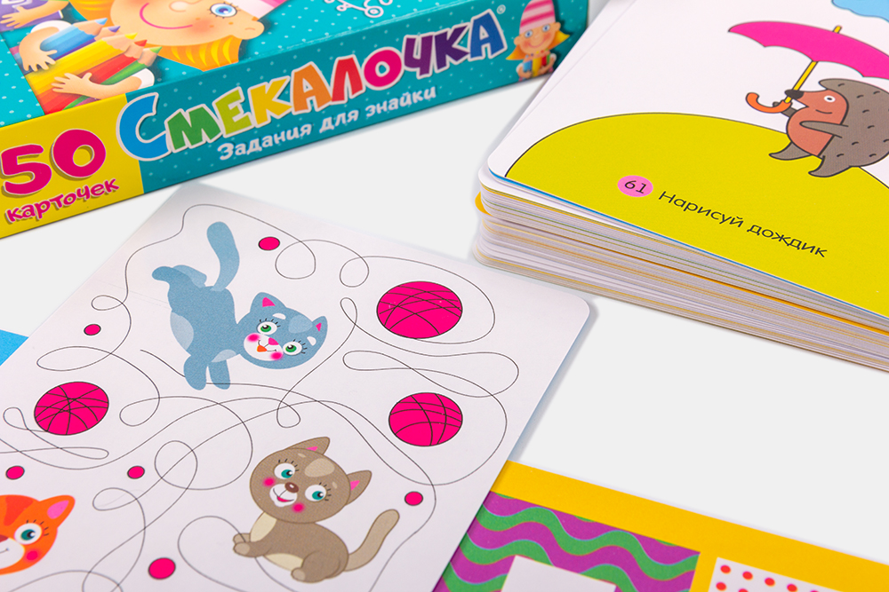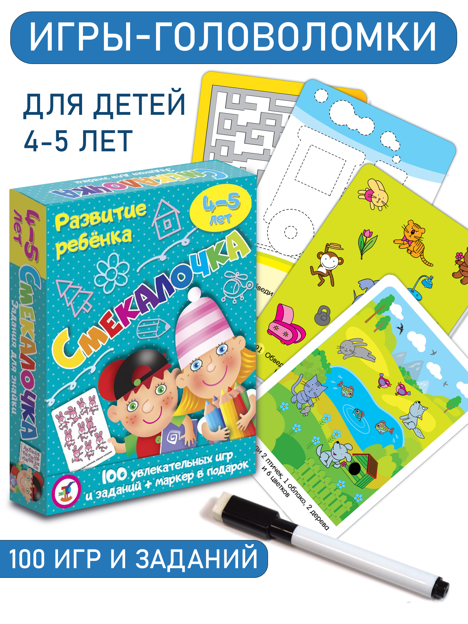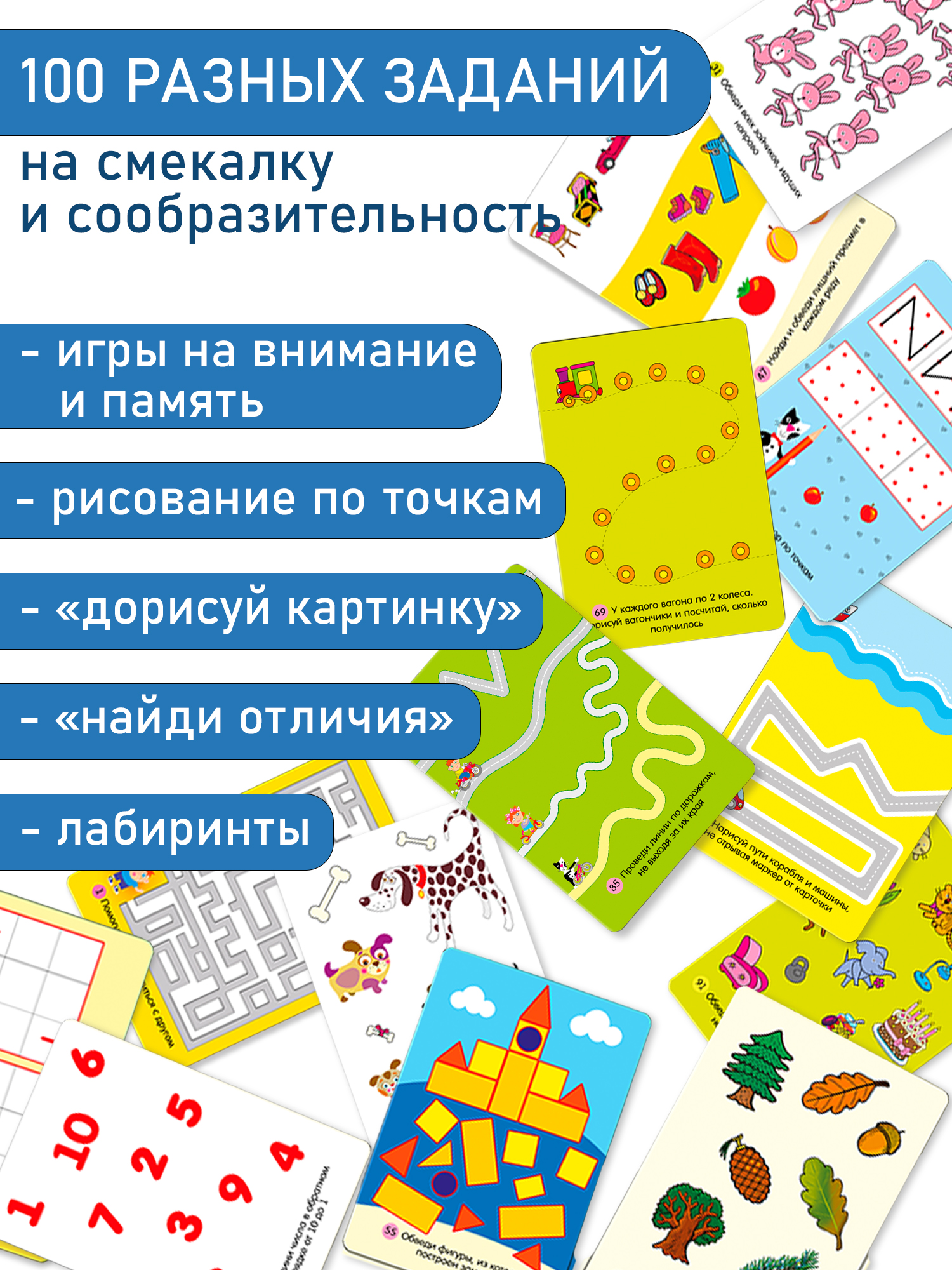 Карточная игра для детей 4-5 лет с головоломками, задачками на сообразительность и смекалку, простыми играми. Задания рассчитаны на реальные возможности ребёнка. В процессе игры он научится самостоятельно искать правильные решения и выполнять нестандартные задачи. Карточек много, задания можно повторять и чередовать, а вся игра компактная и лёгкая, поэтому её можно везде брать с собой.