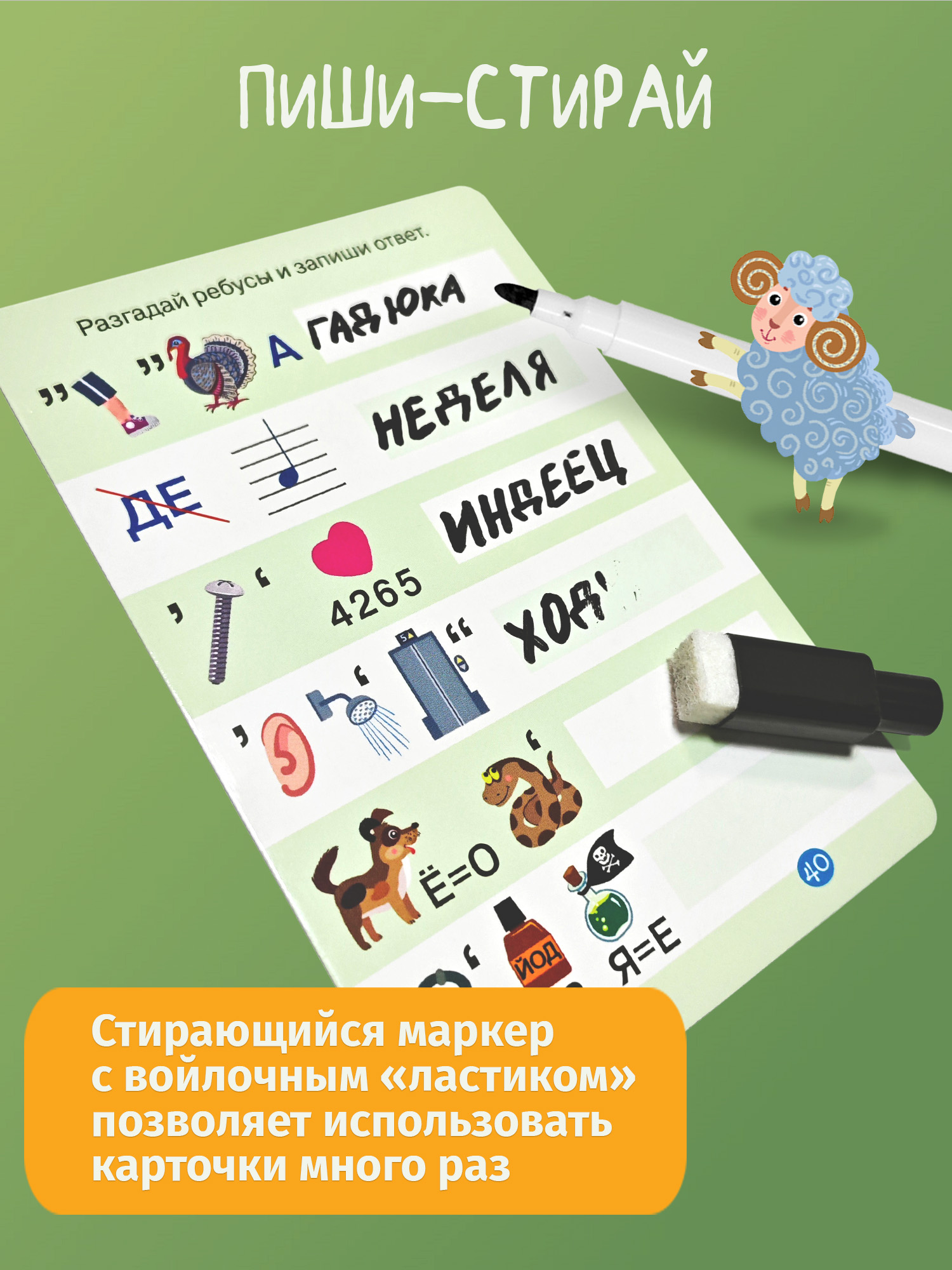 Тренируйтесь каждый день! Благодаря многоразовым карточкам и маркеру на водной основе можно выполнять задания снова и снова.