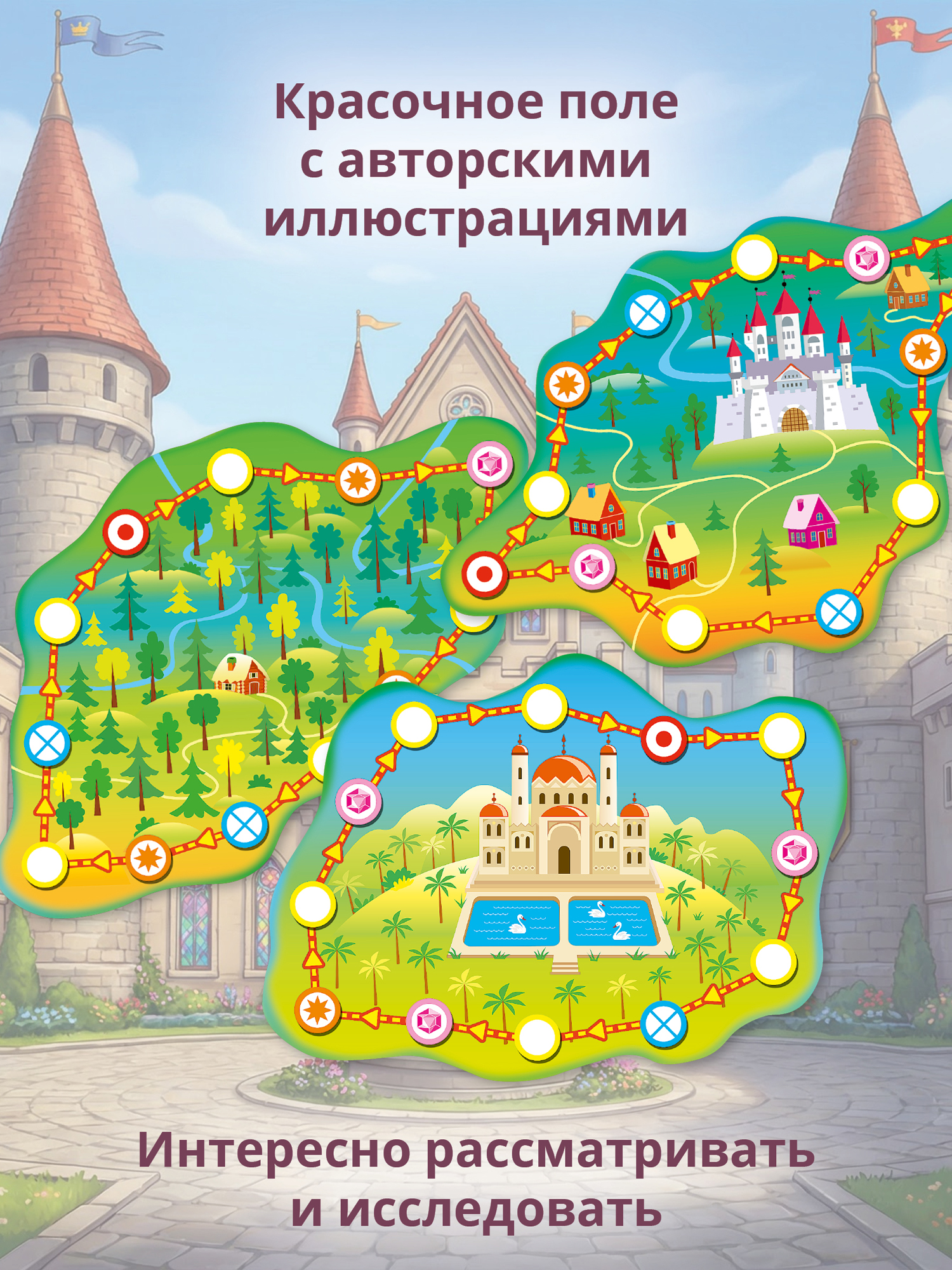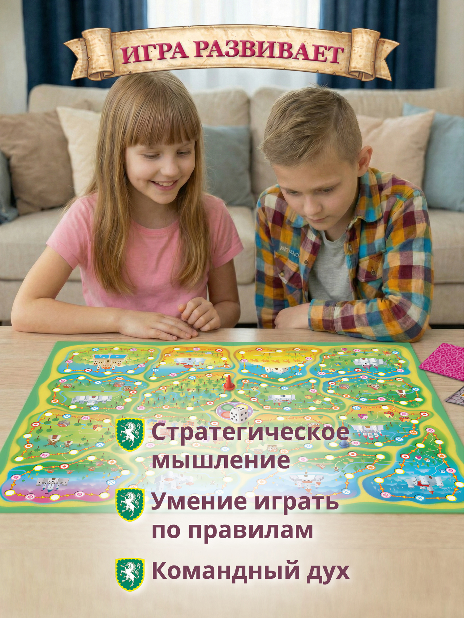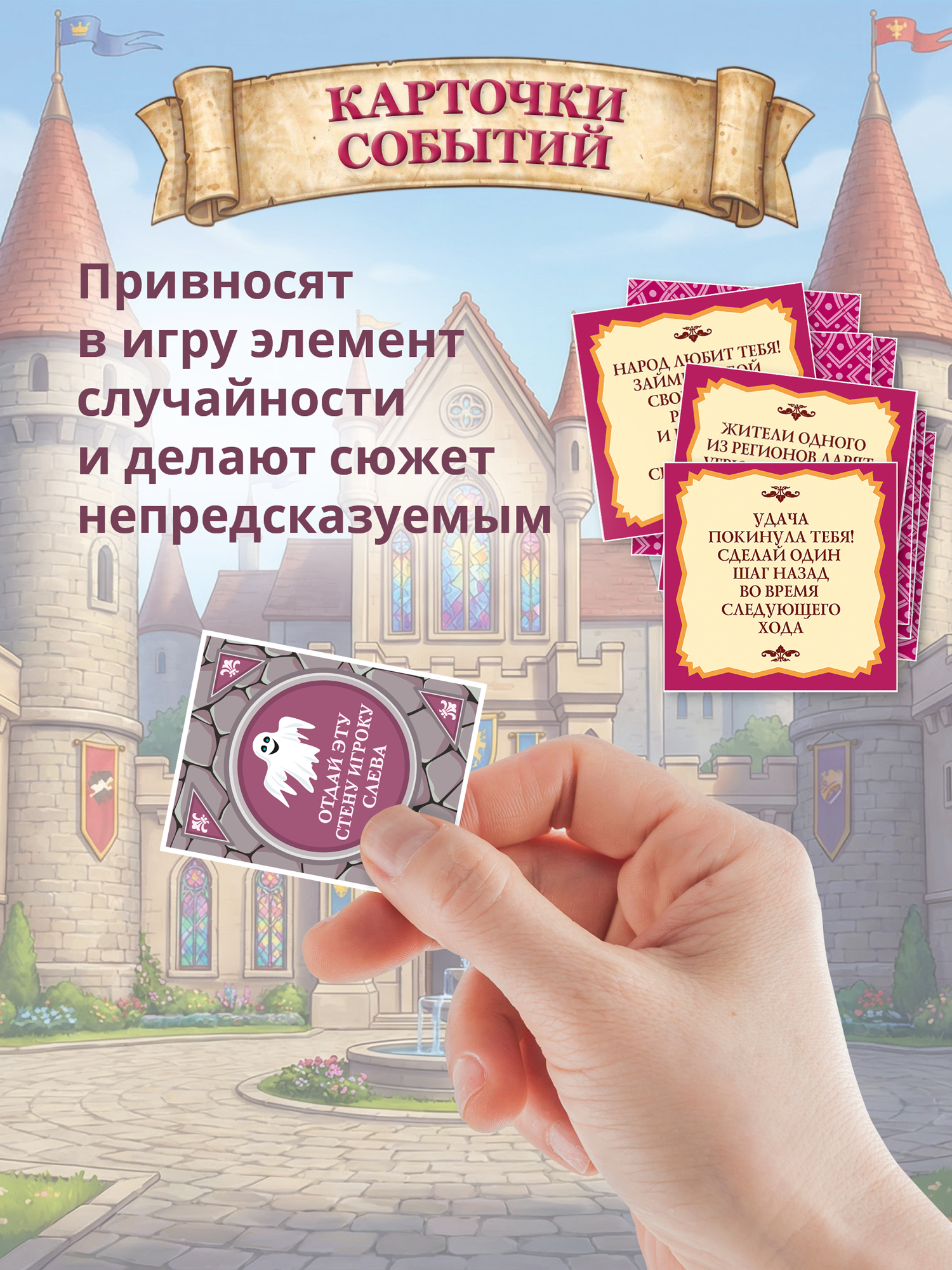 Настольная игра для детей «Короли и замки» – это увлекательная игра ходилка, во время которой игрокам нужно построить королевский замок быстрее, чем соперники. Для этого нужно будет присоединять к своему королевству разные регионы, искать ресурсы и выполнять указания озорных привидений. Привидения могут помочь, а могут и навредить, недаром они озорные. Кроме того, каждый король обладает своим особым свойством, которое здорово повышает шансы на выигрыш. А ещё, можно атаковать и разрушать замки соперников!