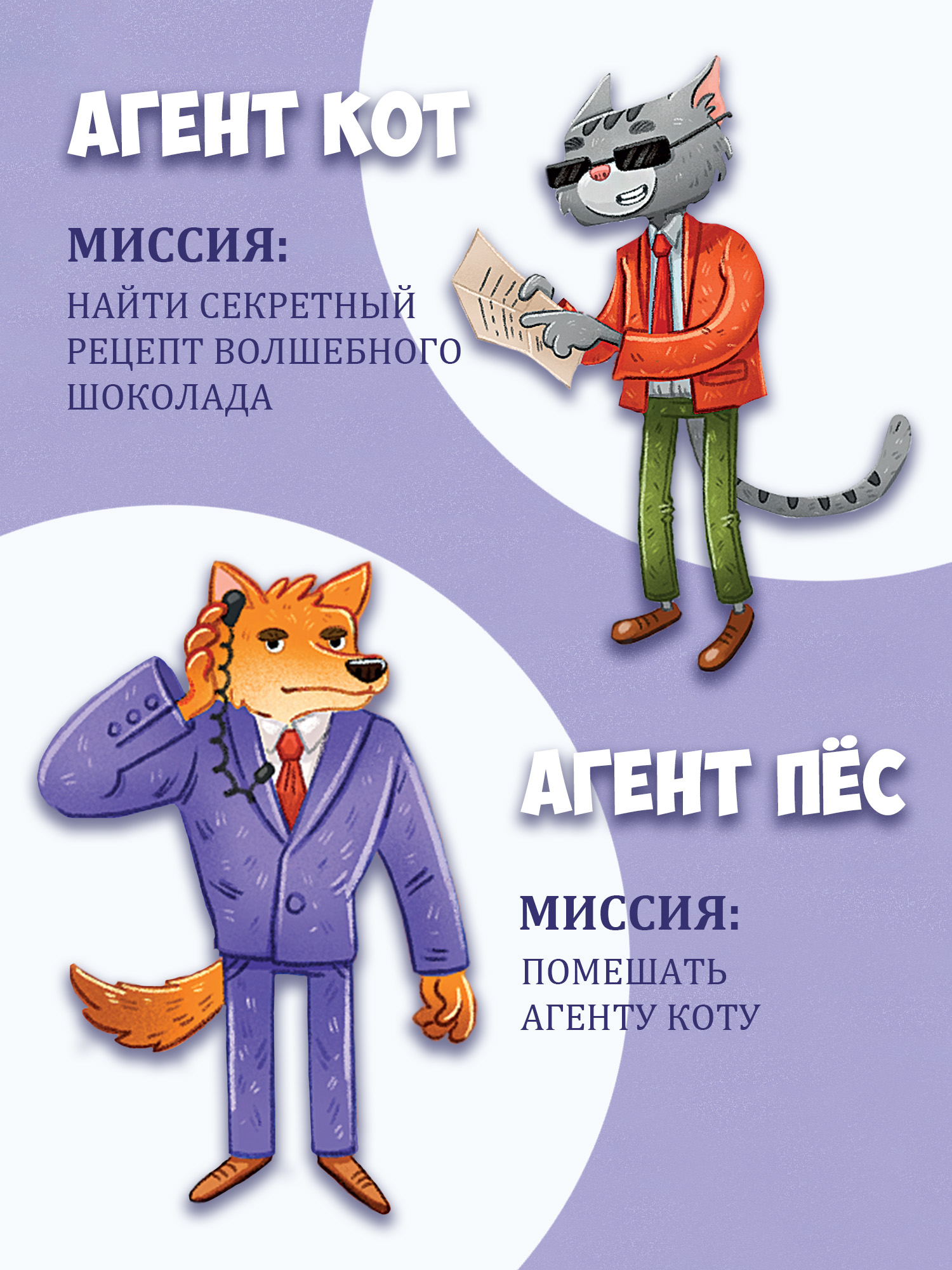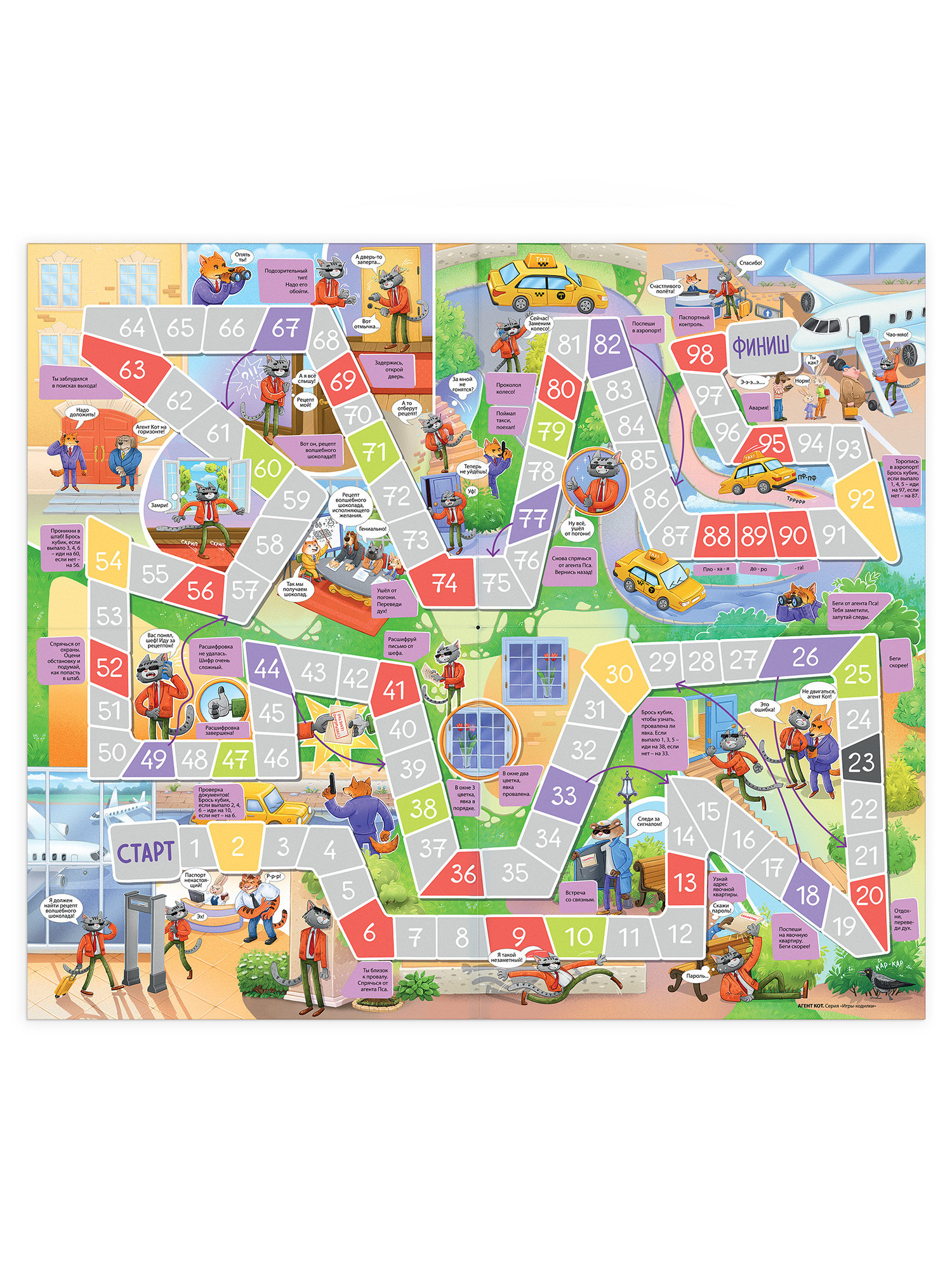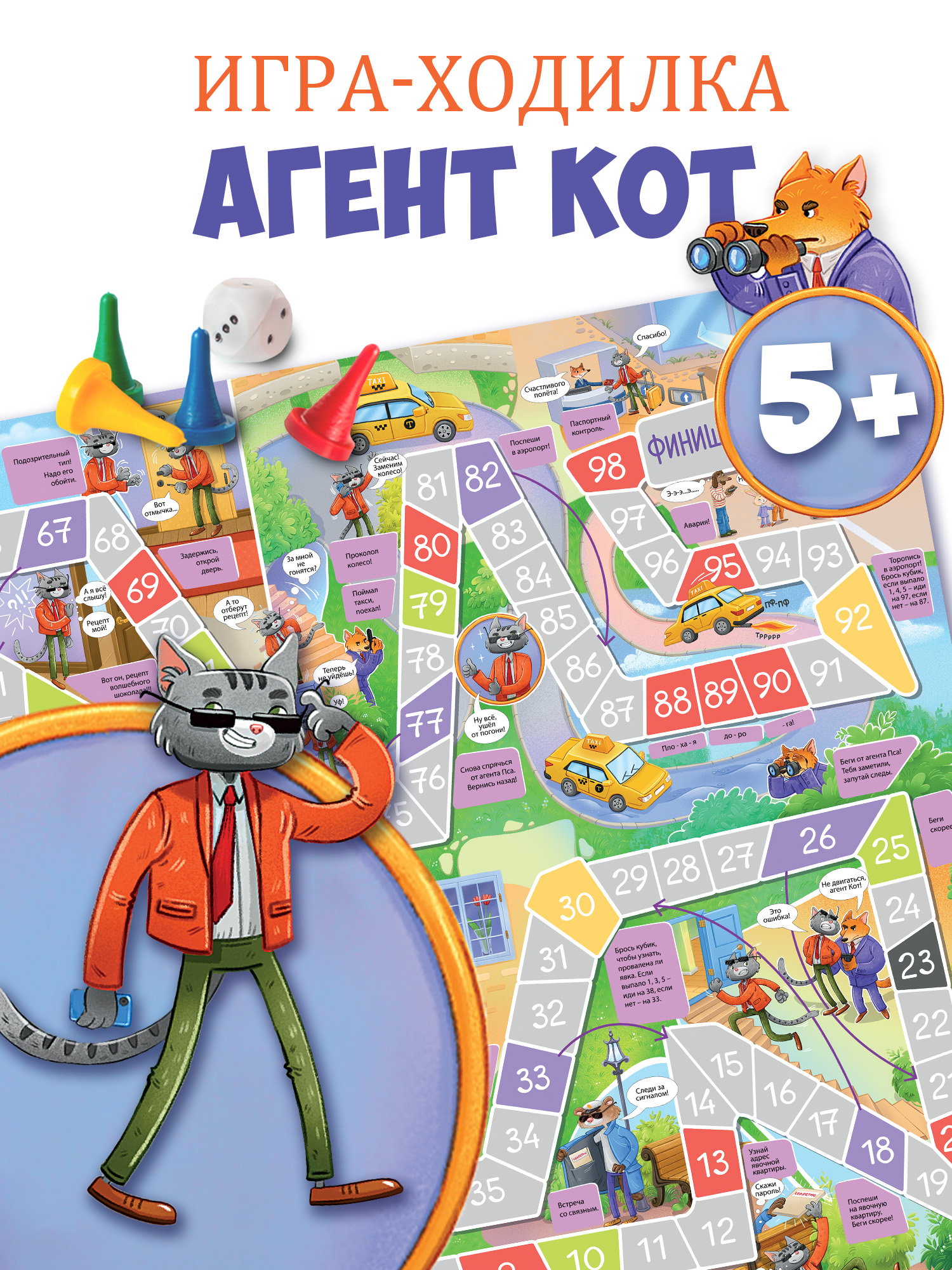 Настольная игра Агент Кот — игра из серии ходилок, так любимых всеми детьми. Это настоящее приключение с агентом Котом, которому нужно найти секретный рецепт волшебного шоколада. Агент Пёс мешает нашему герою — следит за ним, пытается поймать. Игроков ждут встреча со связным, явочная квартира, инструкции от шефа и проникновение в штаб противника!