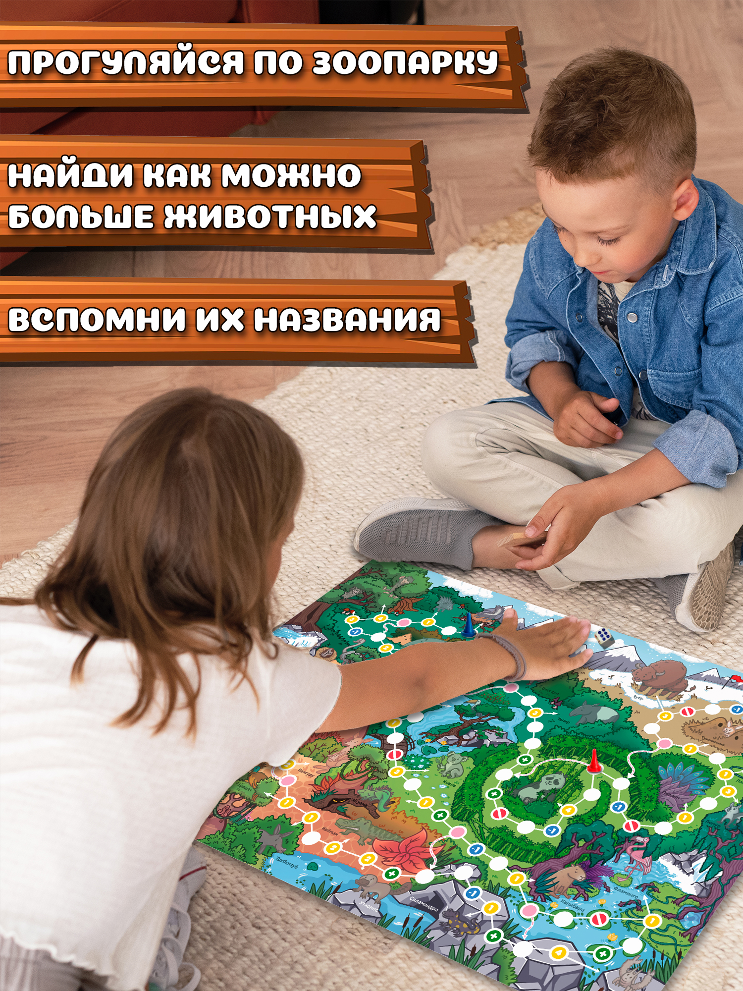 Приглашаем гостей в наш открытый зоопарк, где животные гуляют в дикой природе, а не сидят в клетках! Здесь собрались зверушки со всего света — из Южной Америки, Африки, Австралии, Евразии. Чтобы победить, нужно пройти по маршруту, посетив как можно больше животных и вспомнив их названия.