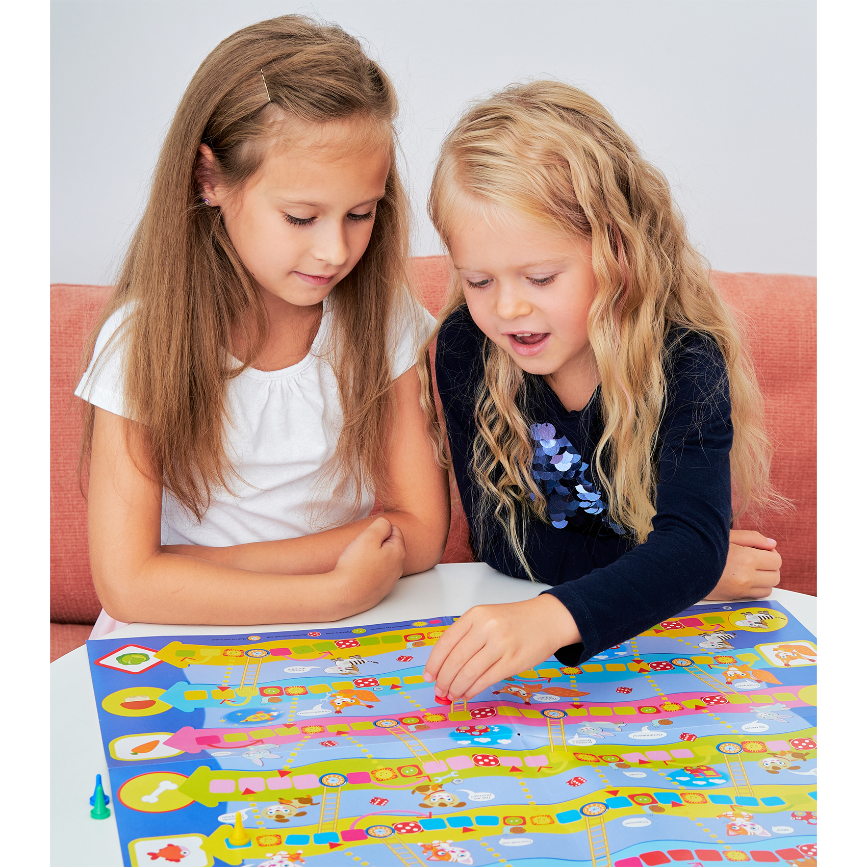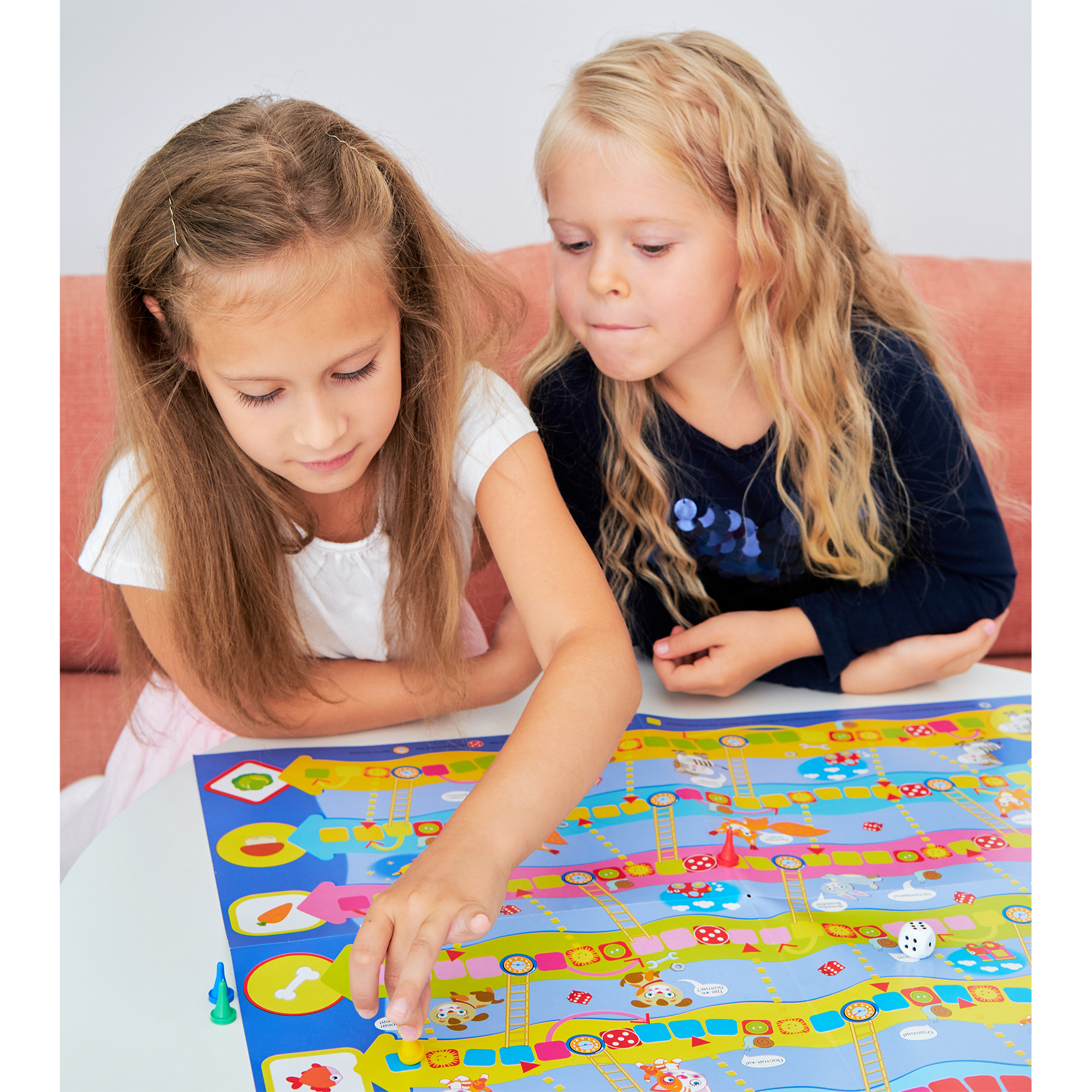 Ходилка с новым игровым движком! Чтобы победить, теперь нужно не просто первым прийти к финишу, а первым прийти к финишу по своей дорожке. На пути игроков много препятствий — пропуски ходов и коварные стрелки-переходы. Для победы нужны смекалка и немного удачи!