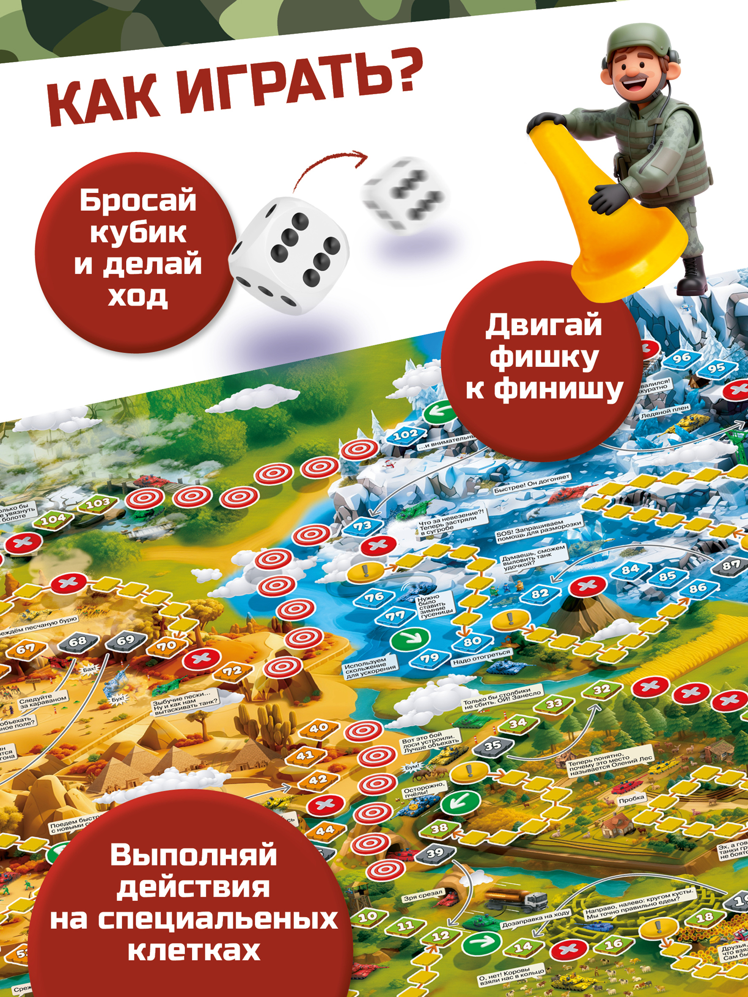 Участники выбирают фишки и ставят их на старт. Далее игроки по очереди бросают кубик и перемещают фишку на соответствующее число шагов. Если фишка остановилась на специальной клетке, игроки выполняют указанное действие: