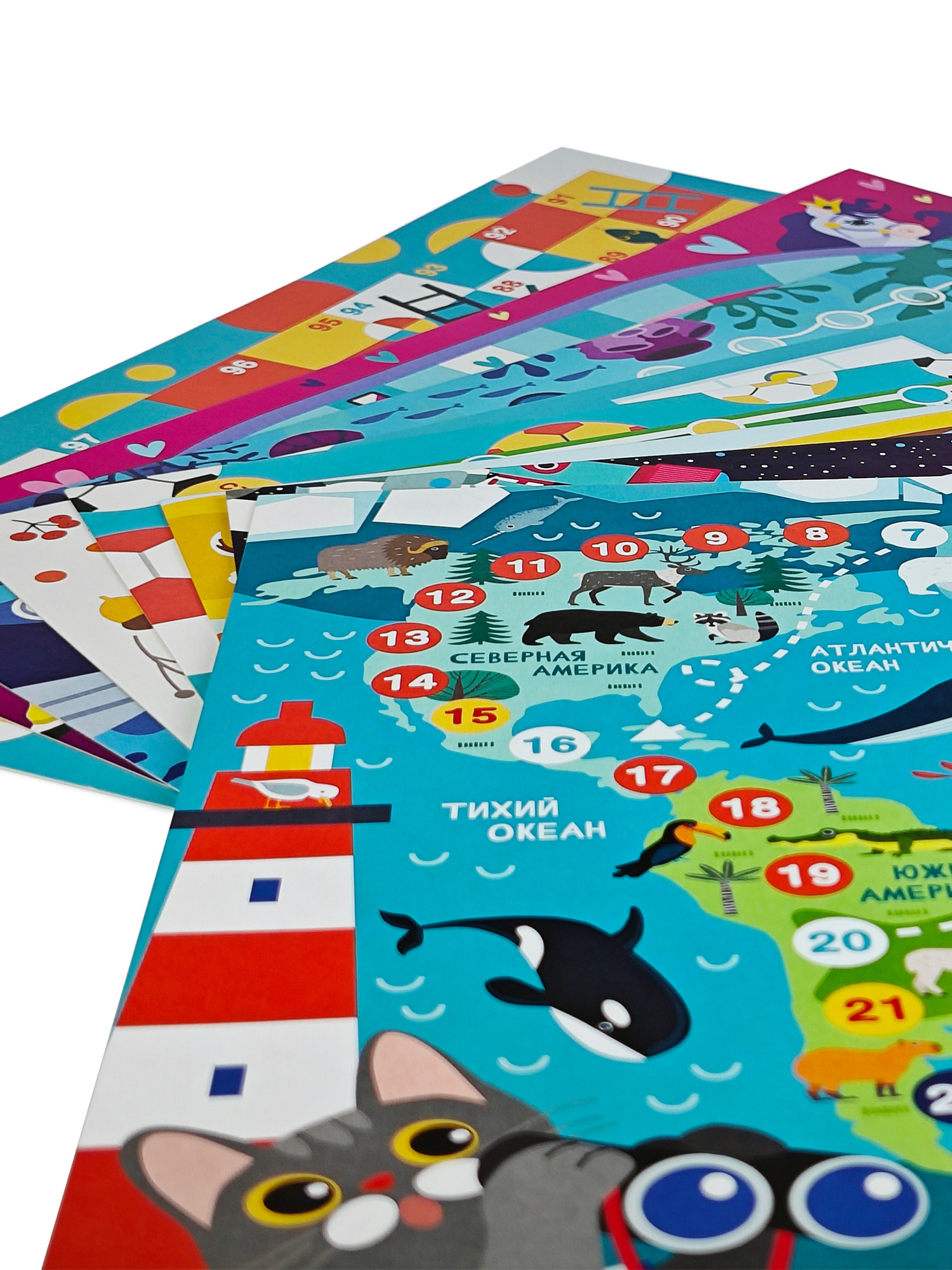 В наборе: 8 игровых полей из картона, правила.