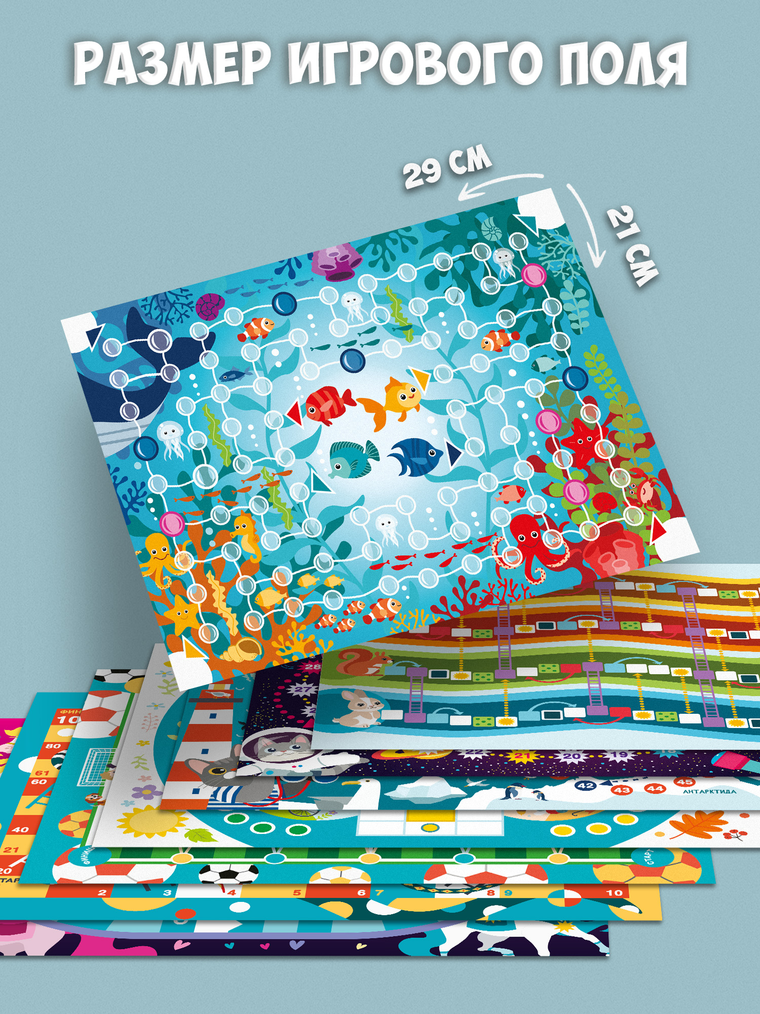Размер игрового поля: 21 х 29 см.
