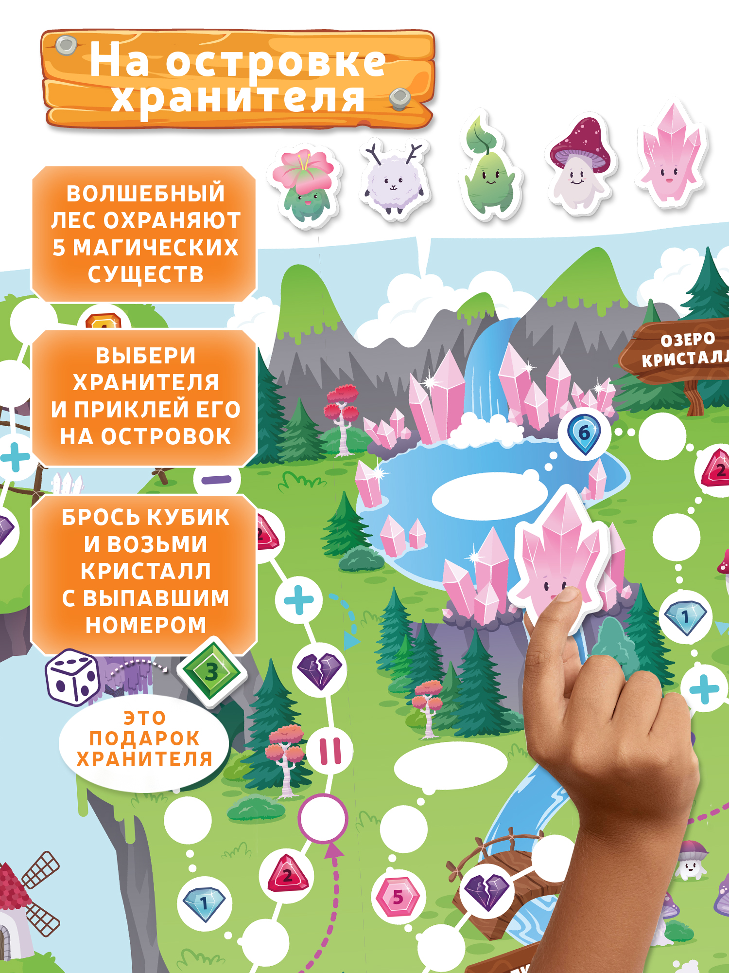 Игроки идут по дорожкам на поле и собирают красивые магические кристаллы (объёмные многоразовые наклейки), каждый в свою «сокровищницу». Каждый камешек обладает ценностью от 1 до 6 очков. Цель игры — заработать как можно больше очков. Лесные хранители (на наклейках) помогают игрокам собирать кристаллы.