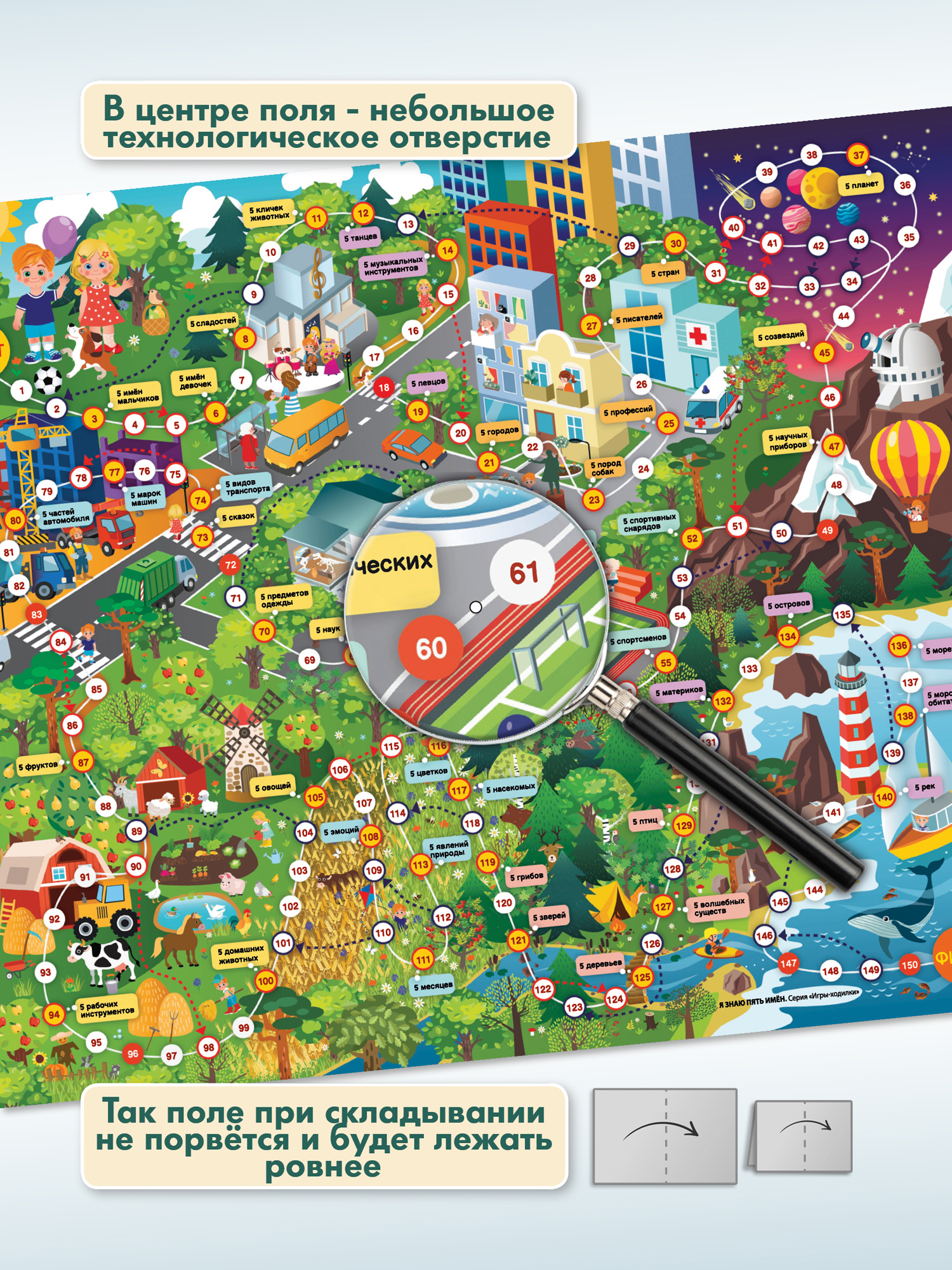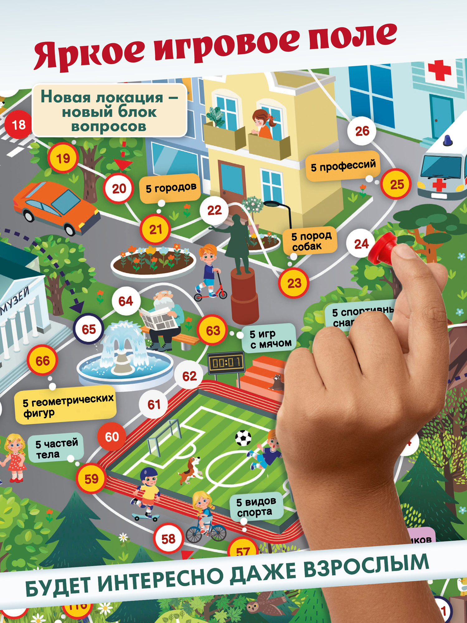 Передвигаться по игровому полю нужно будет с помощью фишек и кубика. Бросив кубик, игроки делают столько ходов по игровому полю, сколько очков выпало на кубике. Если фишка остановилась на специальной клетке, нужно за ограниченное время назвать пять наименований, указанных на ней. Выиграет тот, кто первым доберётся до финиша.