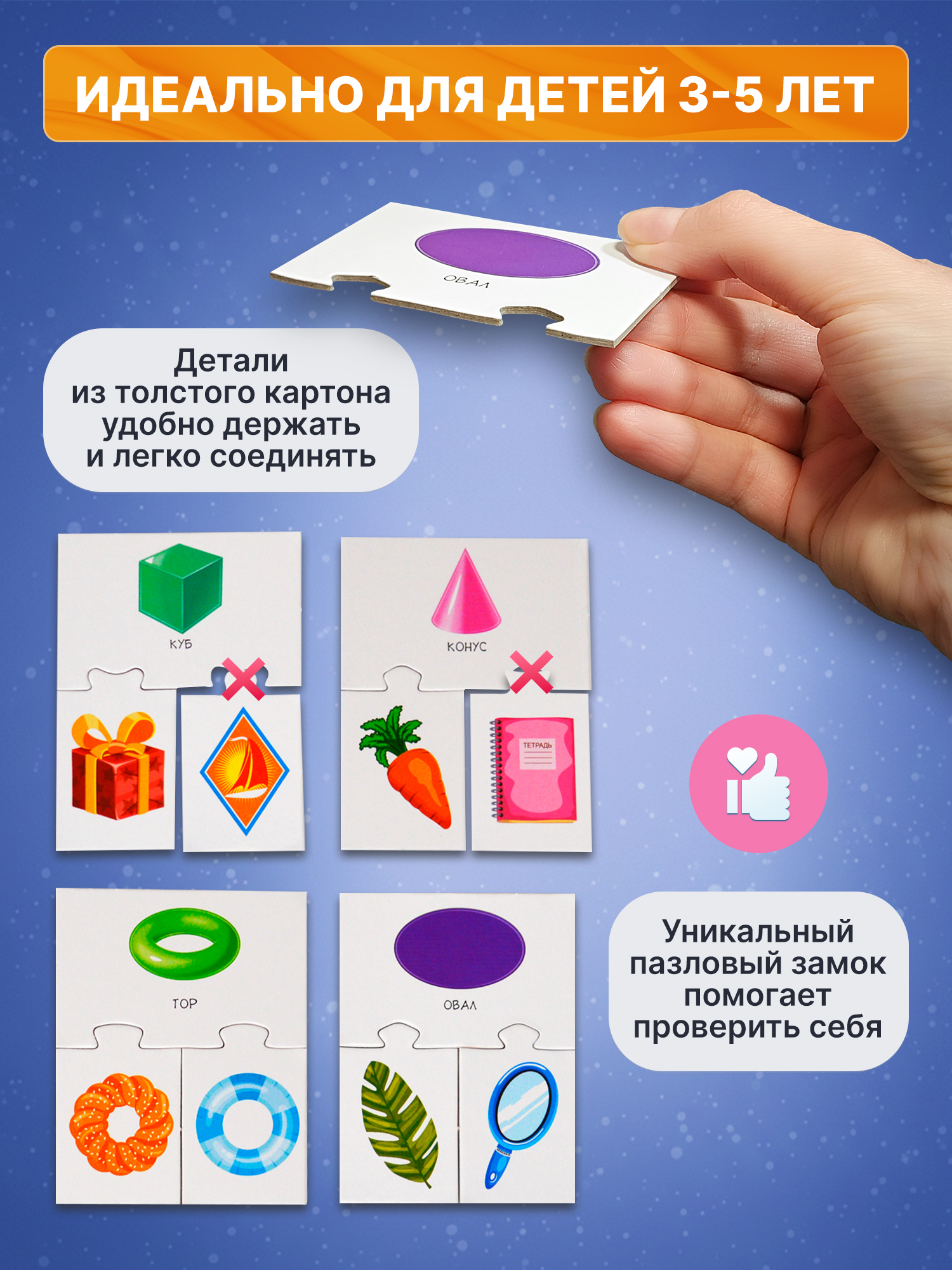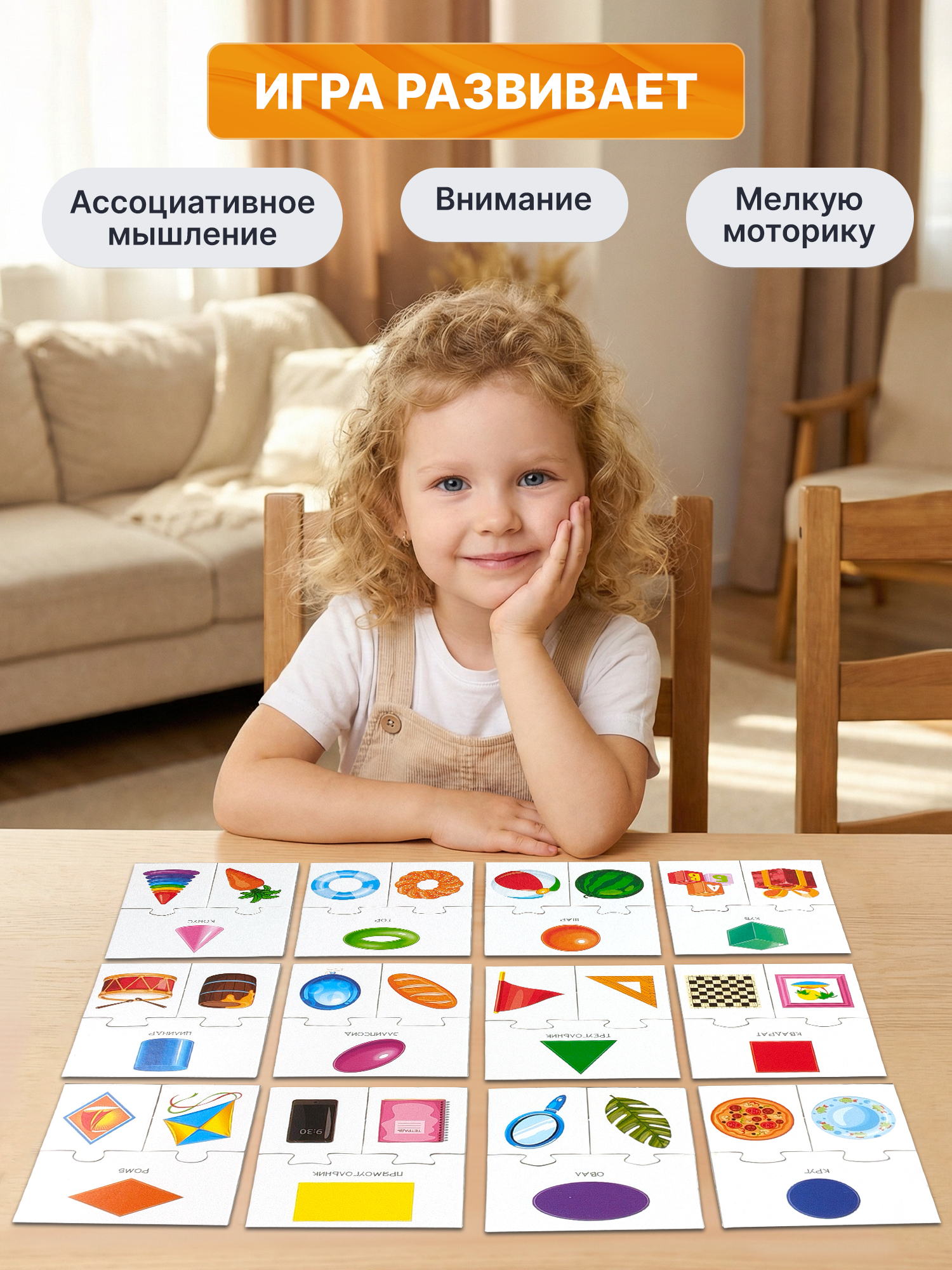Игра развивает внимание, ассоциативное мышление, логику и мелкую моторику. Её можно использовать для занятий в детском саду или в качестве подарка на любой детский праздник.