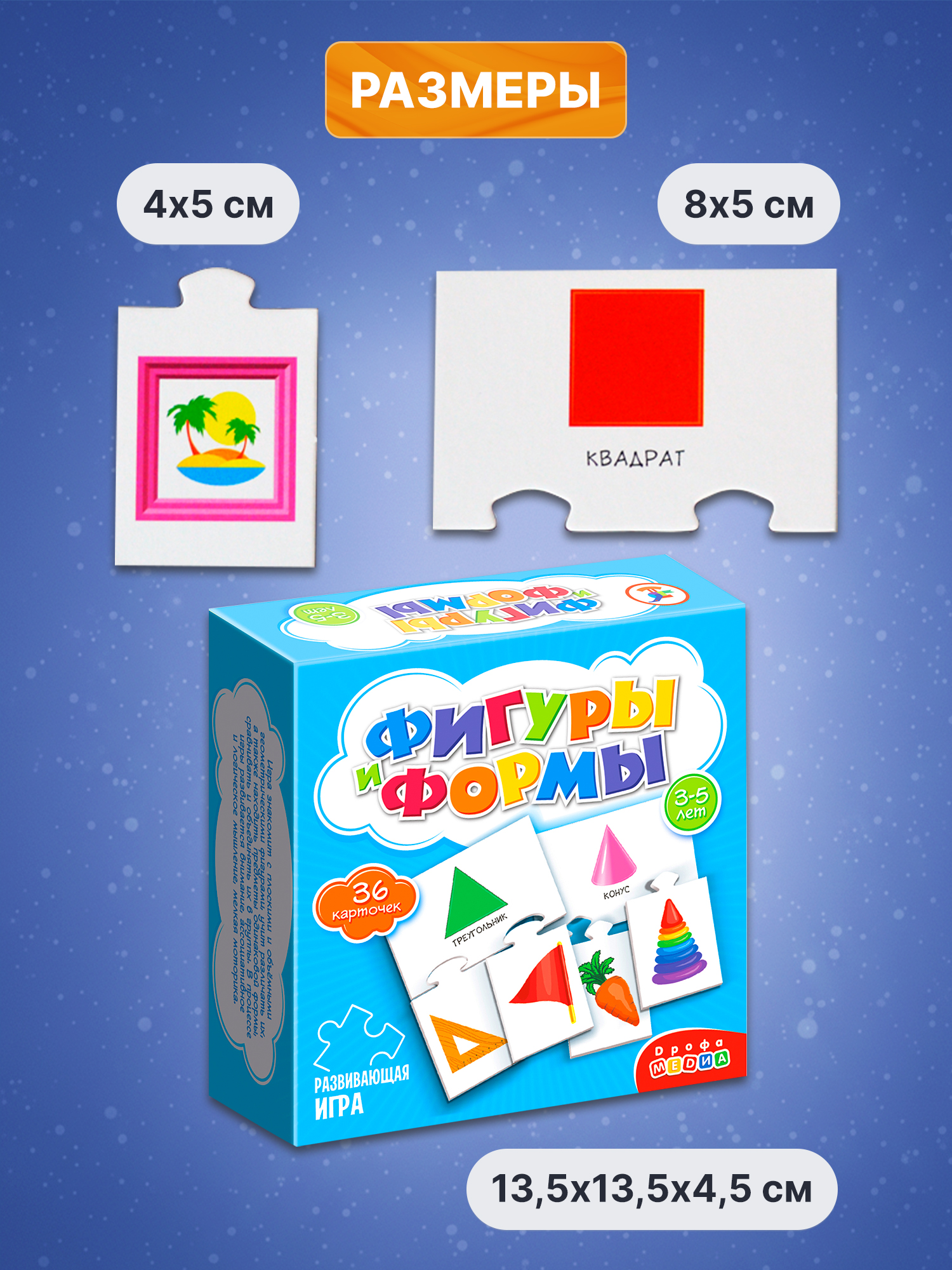 Размер карточек: 8,2х5,2 см и 4,1х5,2 см.