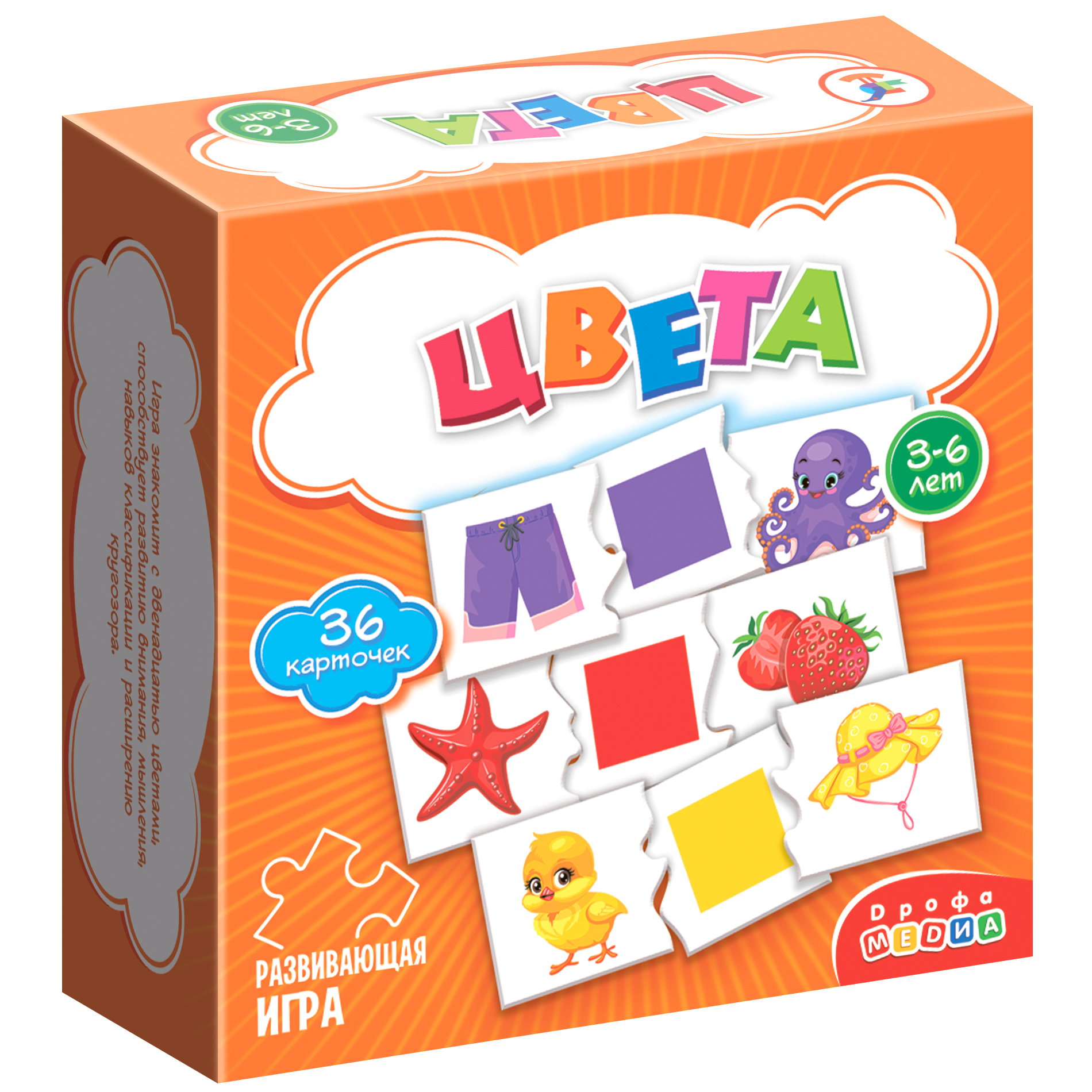 В правилах представлено несколько вариантов игры, благодаря которым ребёнок познакомится с 12-ю цветами, а также научится объединять предметы в группу и подбирать к ним обобщающее слово.