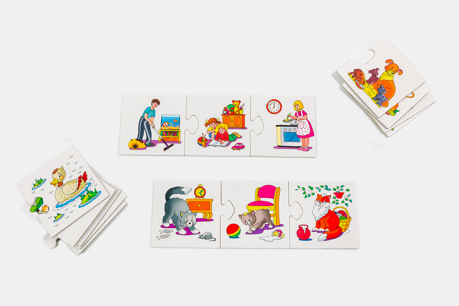 Игра знакомит с дикими и домашними животными, средой их обитания, учит находить одинаковых животных и объединять их в семьи, даёт представление о человеческой семье, развивает внимание, мышление, мелкую моторику.