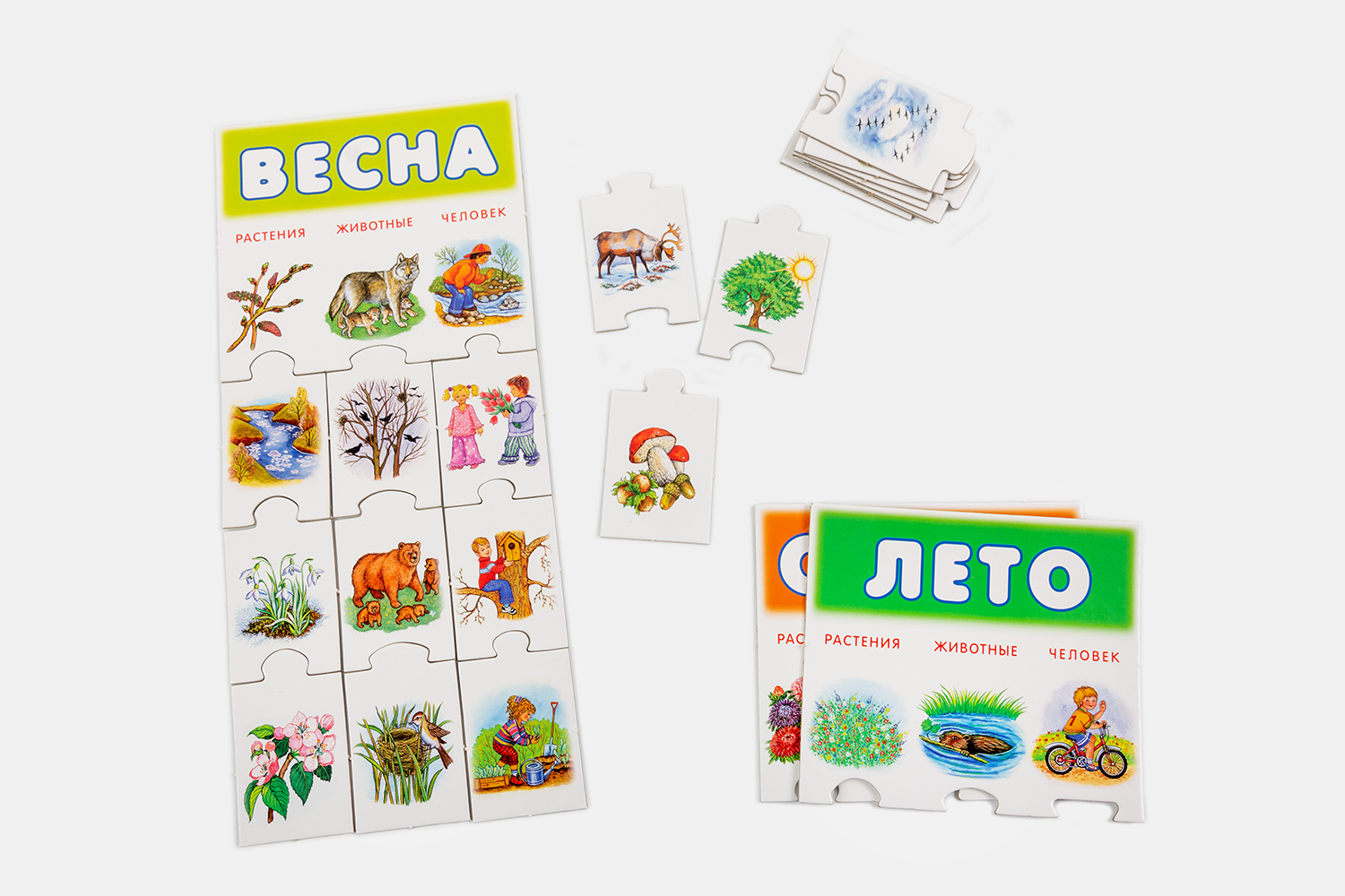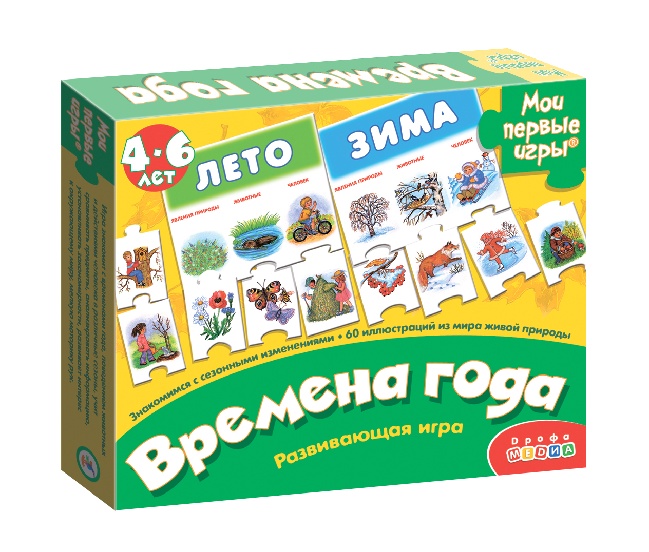 Игра знакомит с временами года, поведением животных и действиями человека в разные сезоны, учит сравнивать предметы, анализировать информацию, устанавливать закономерности, развивает интерес к окружающему миру, мелкую моторику рук.