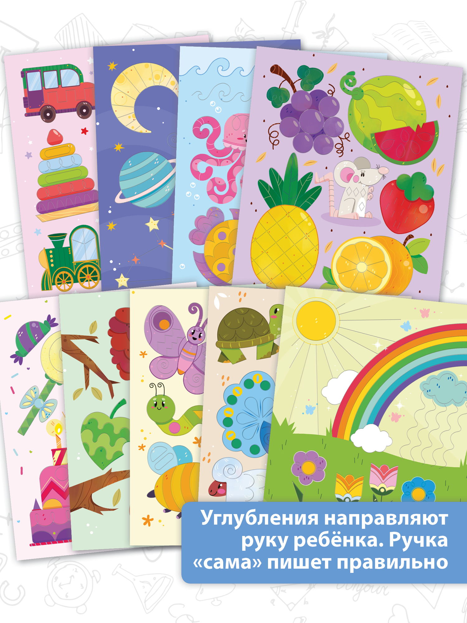 3D прописи – современная методика постановки руки и занимательный тренажёр для дошкольников! На картонных страницах есть специальные углубления. Ручка «сама» двигается в нужном направлении, а линии получаются ровными и красивыми.