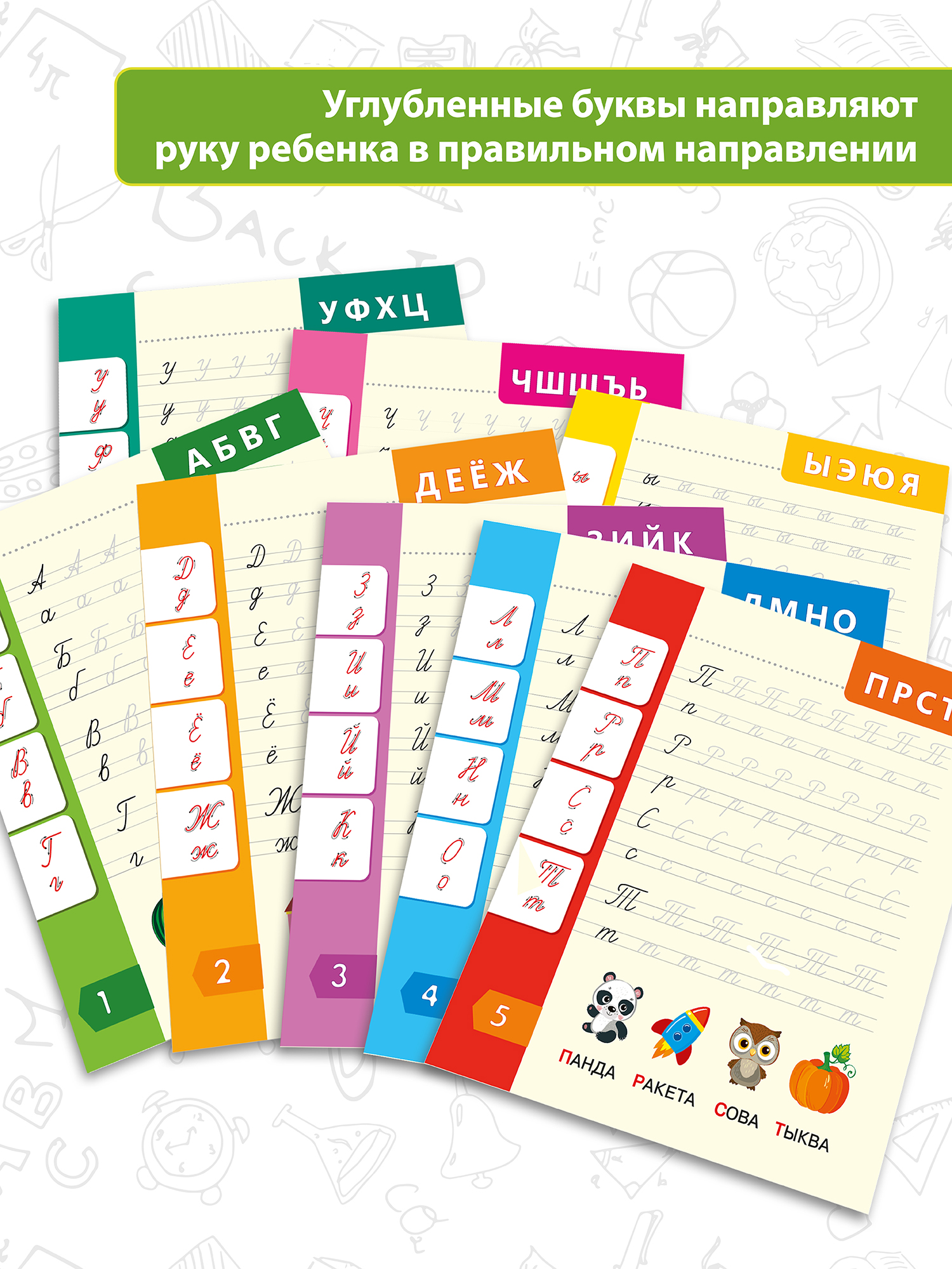 Как научить малыша красиво писать? 3D прописи — современная методика постановки почерка! На картонных страницах есть специальные углубления в форме букв. Ручка «сама» двигается в нужном направлении, а рука ребёнка «запоминает» правильное написание.