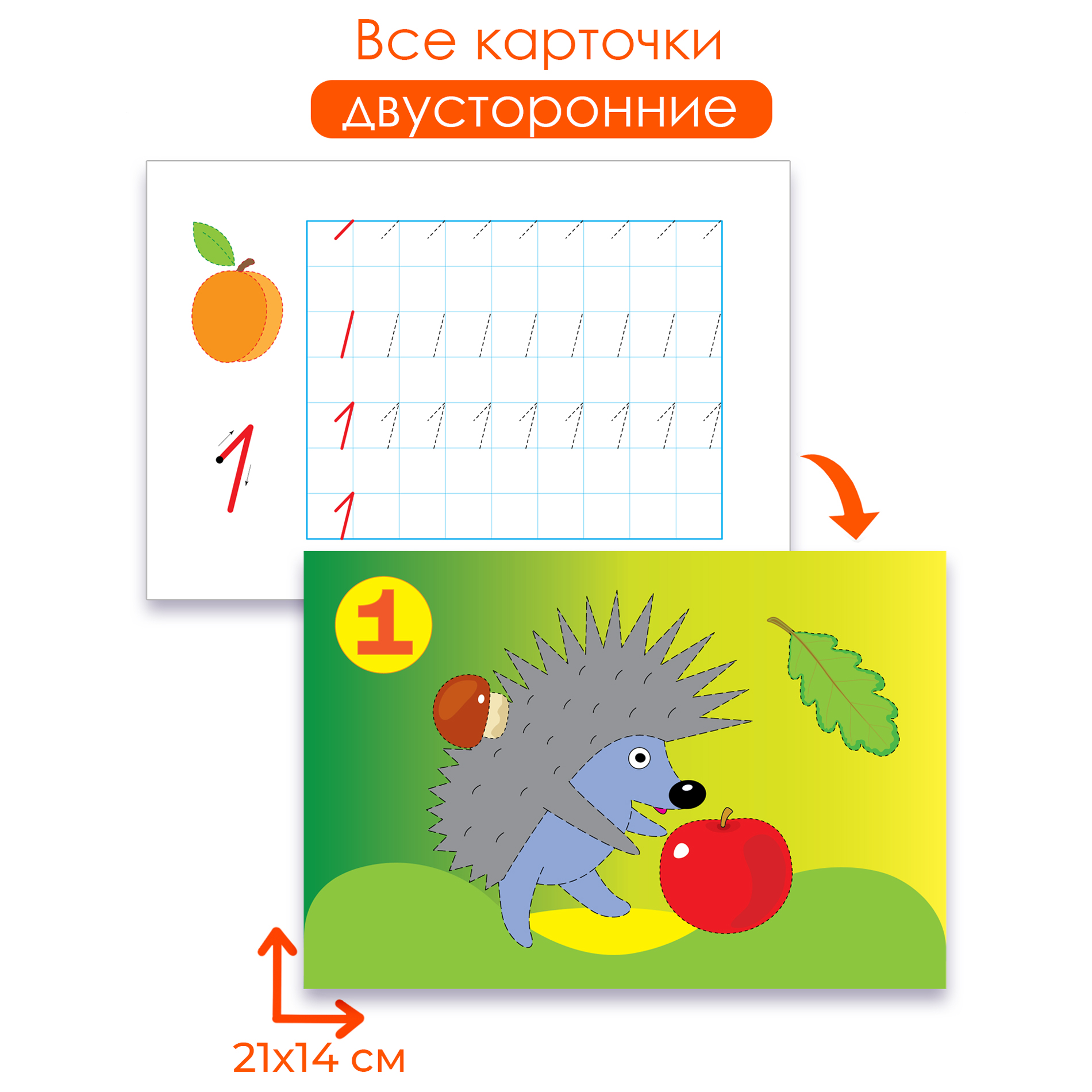 Карточки - прописи для детей 5—7 лет помогут подготовить руку к письму, познакомят с числами от 1 до 10, геометрическими фигурами, научат обводить картинки по контуру, писать цифры.