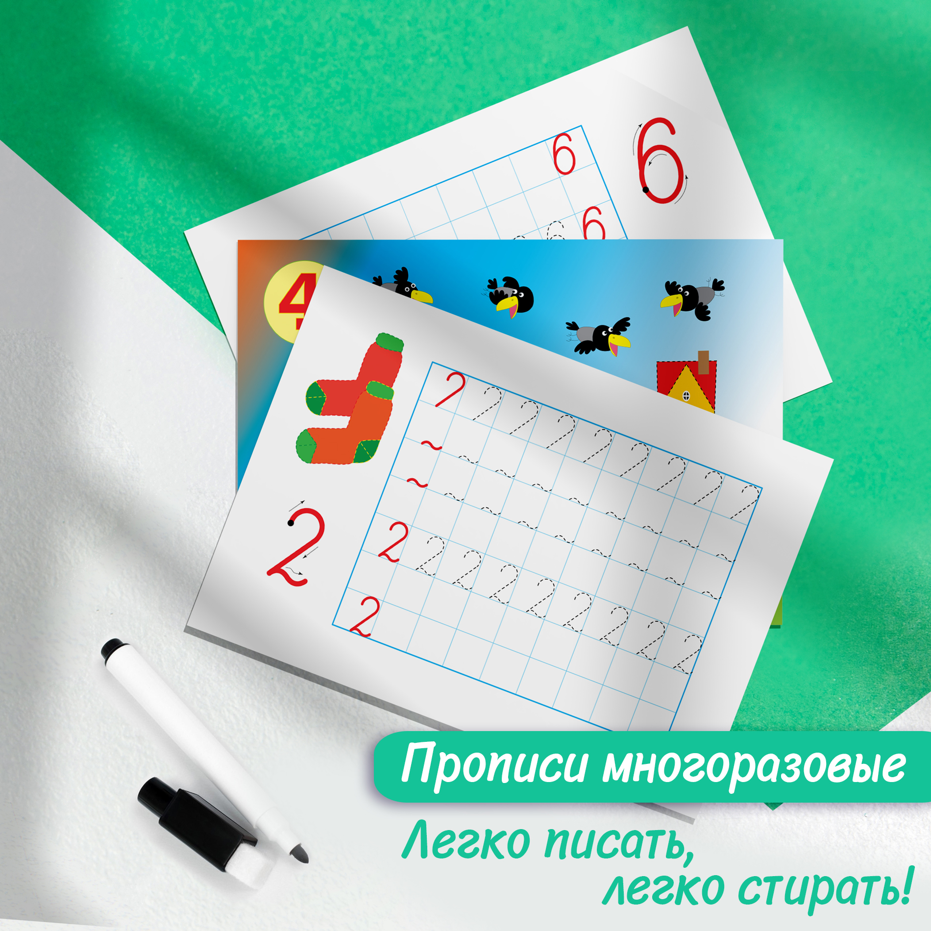 Многоразовые прописи позволяют легко стереть и исправить неаккуратные линии, превращая обучение в игру. Одни и те же карточки сможет использовать и старший, и младший ребёнок в семье!