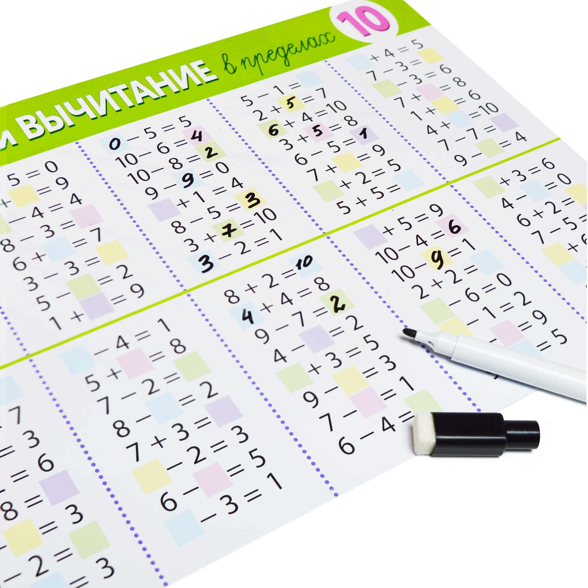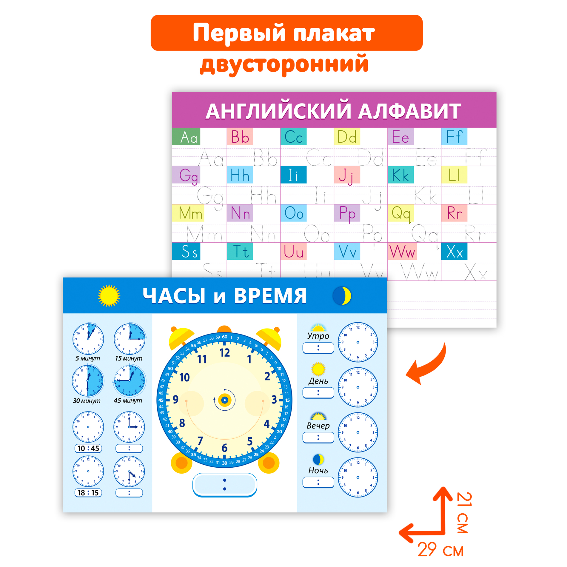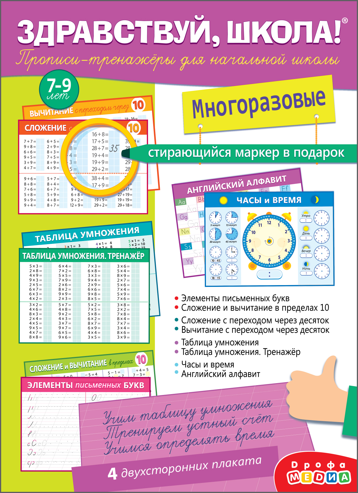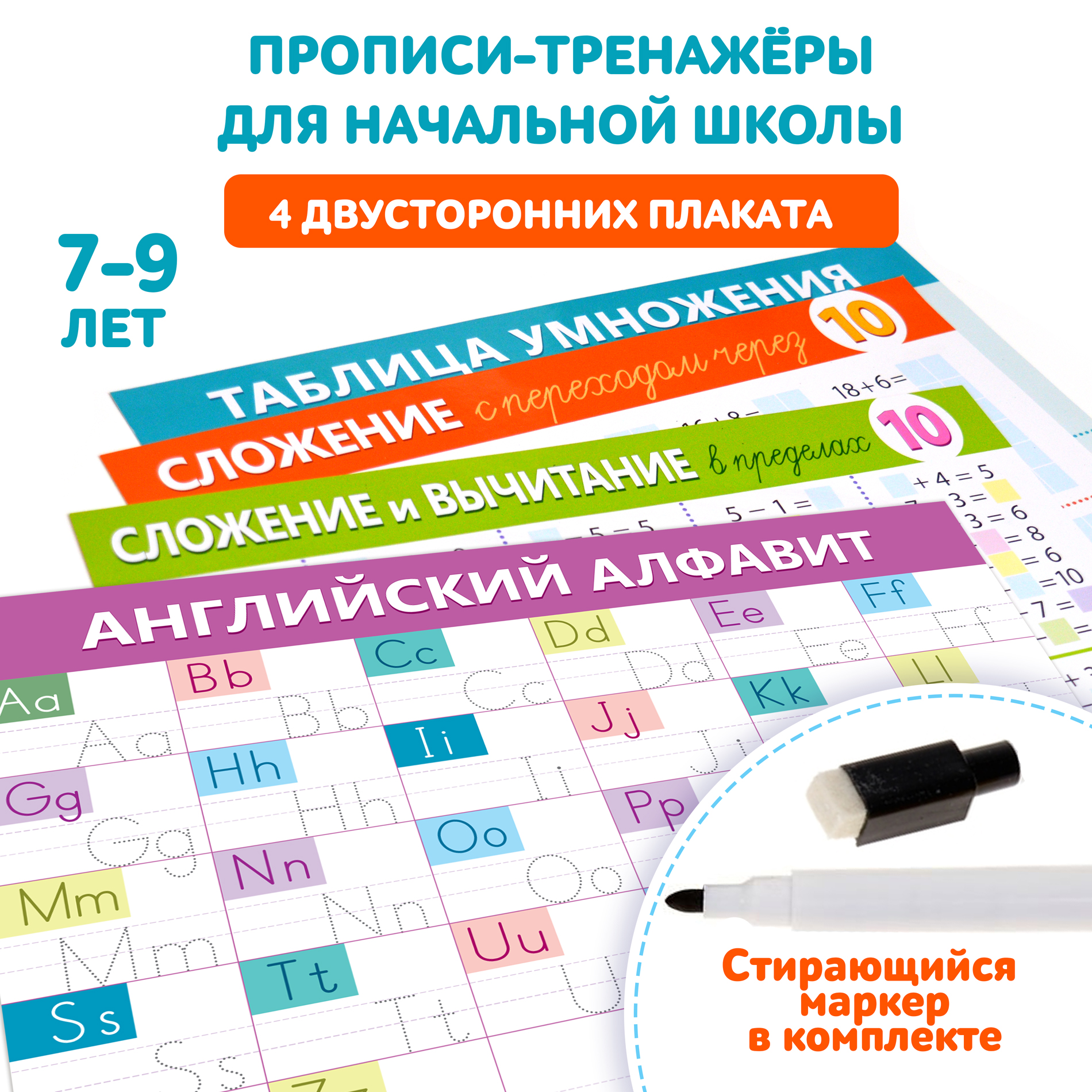 В комплекте: 4 двухсторонних плаката, маркер на водной основе.