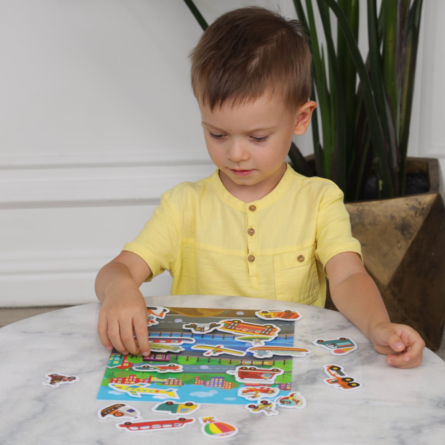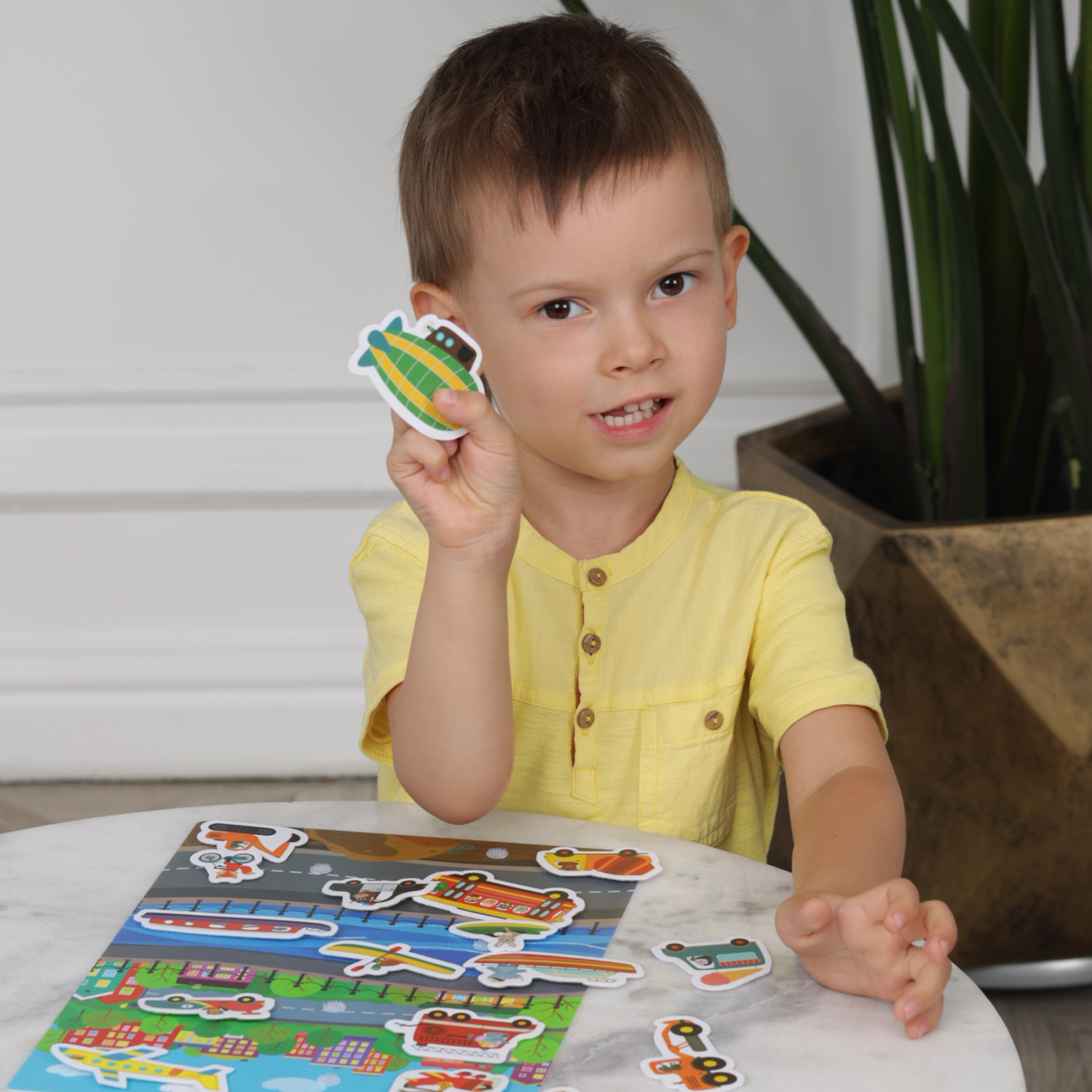 На одну и ту же сюжетную картинку ребёнок может прикрепить разные виды транспорта и придумать свою историю (ролевую игру).