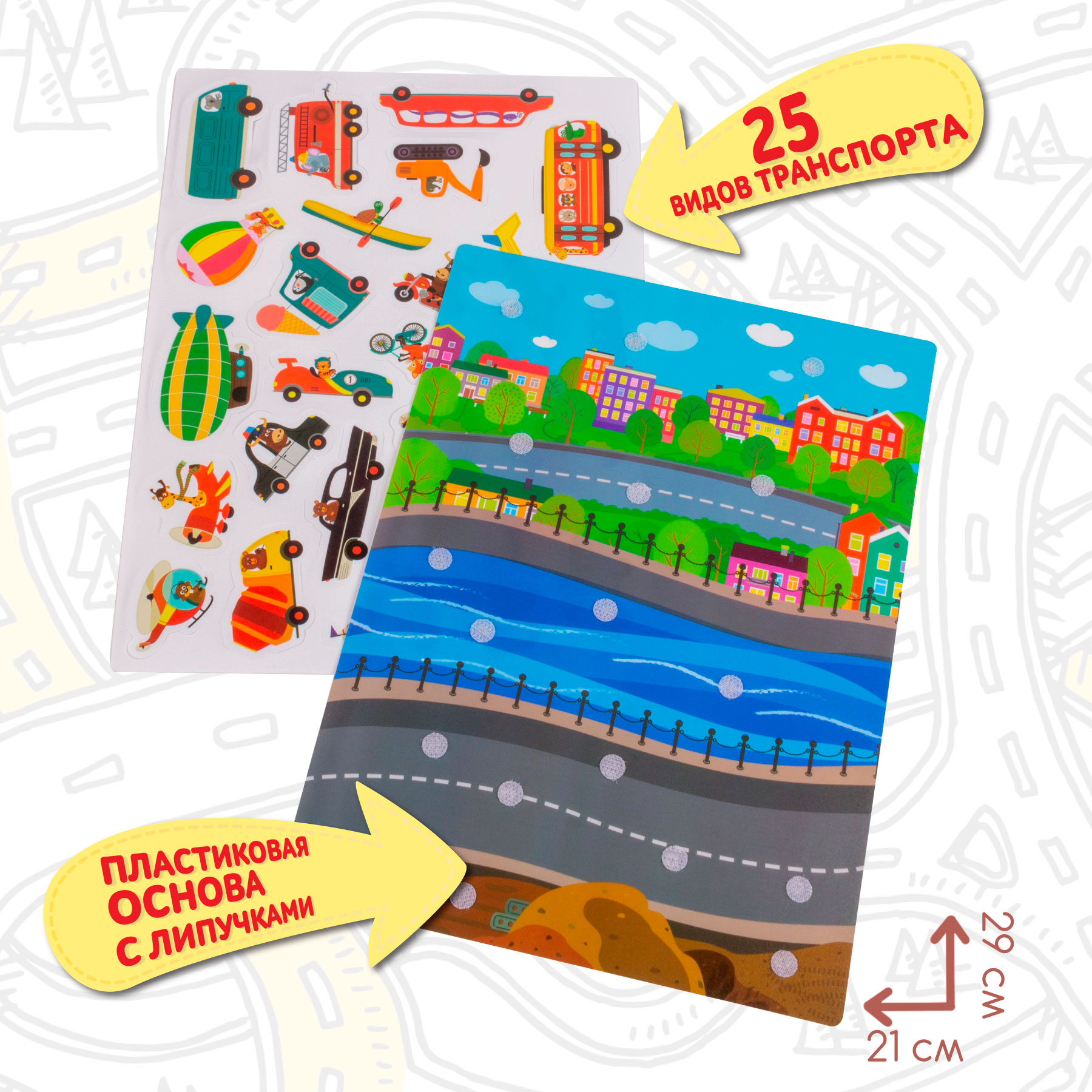 В комплекте: пластиковая основа с липучками - 1 шт., лист с деталями - 1 шт.