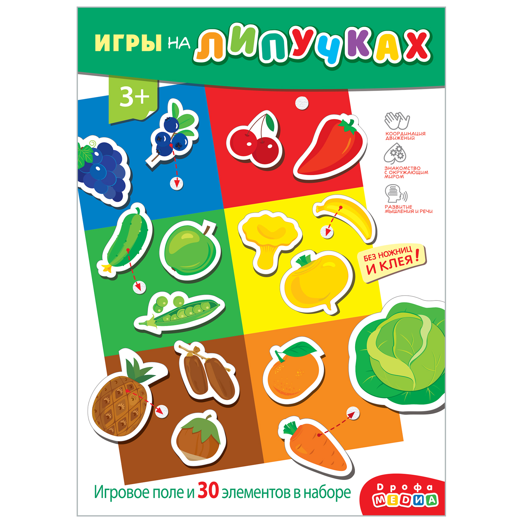 Игра знакомит с шестью основными цветами и различными плодами - овощами, фруктами, грибами, ягодами. Учит классифицировать предметы по разным основаниям, пользоваться липучками.