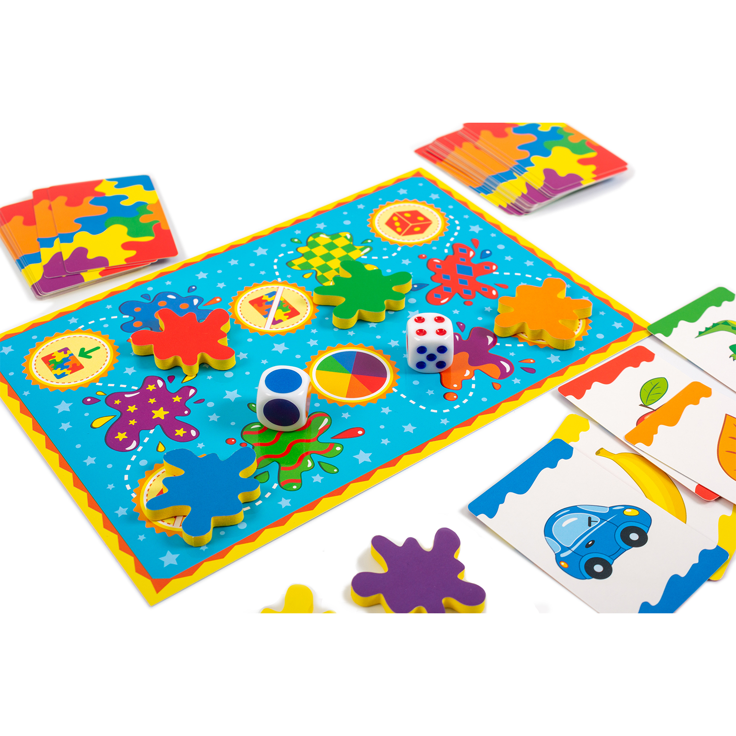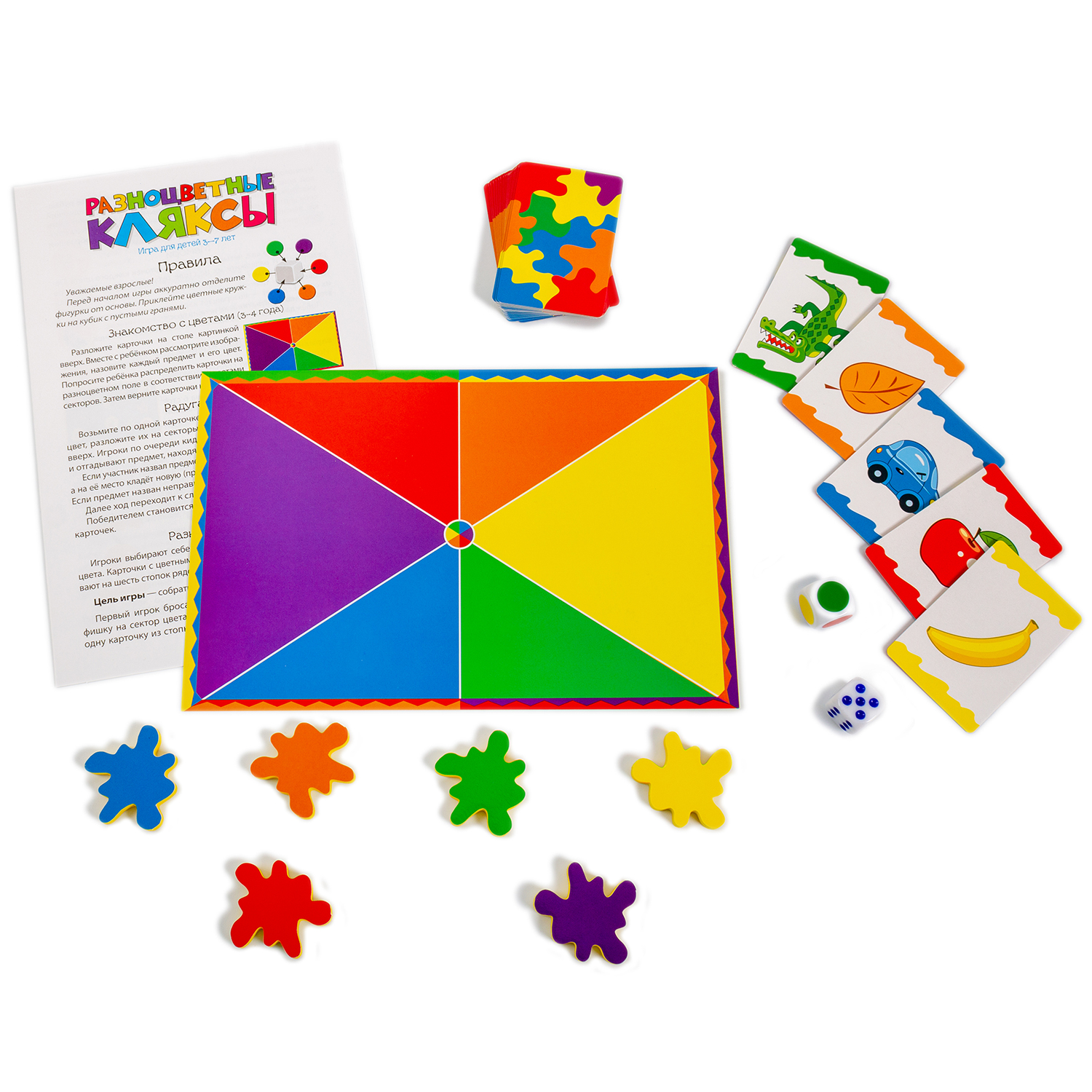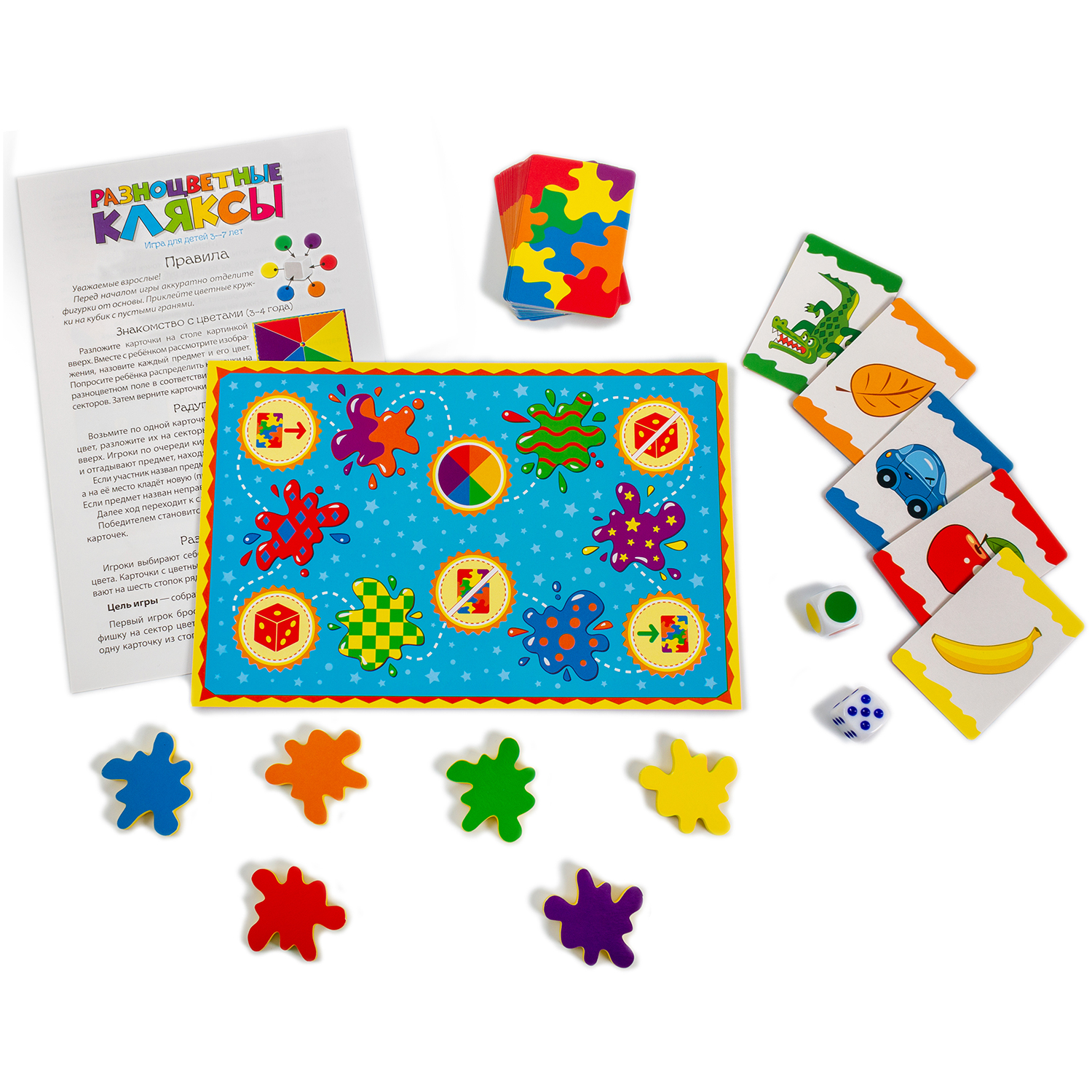 Цветные кляксы – это игра-ходилка, в которой игрокам нужно собрать комплект из карт шести цветов.