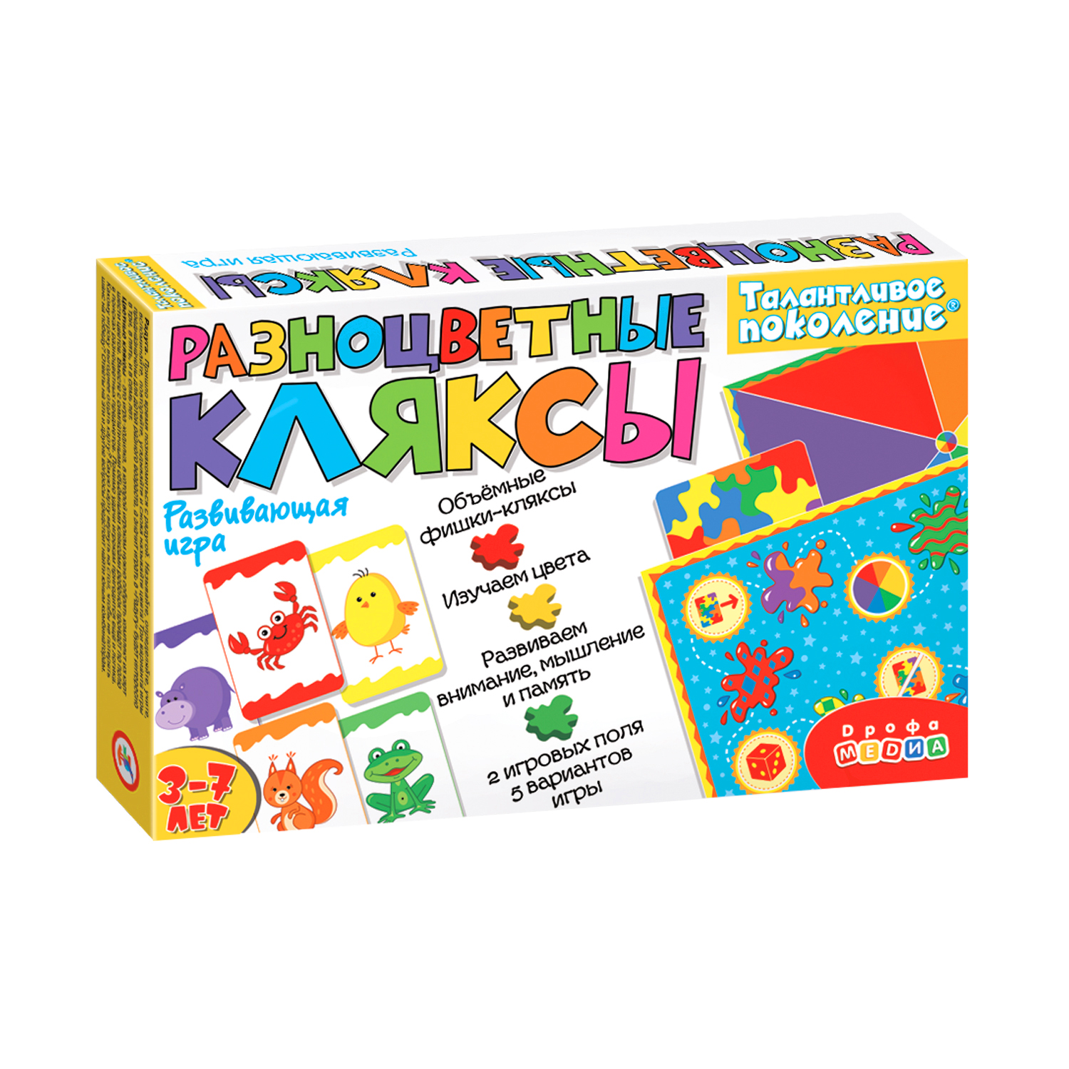 Вместе с симпатичными объёмными кляксами ребёнок пройдёт по полю в поисках предметов шести цветов. Помимо удачи игрокам пригодится ещё и логика. Какому игроку выгоднее отдать карту? Какую карту вернуть на стол, чтобы не потерять шанс на победу? Ответы на эти и другие вопросы предстоит найти юным комбинаторам.