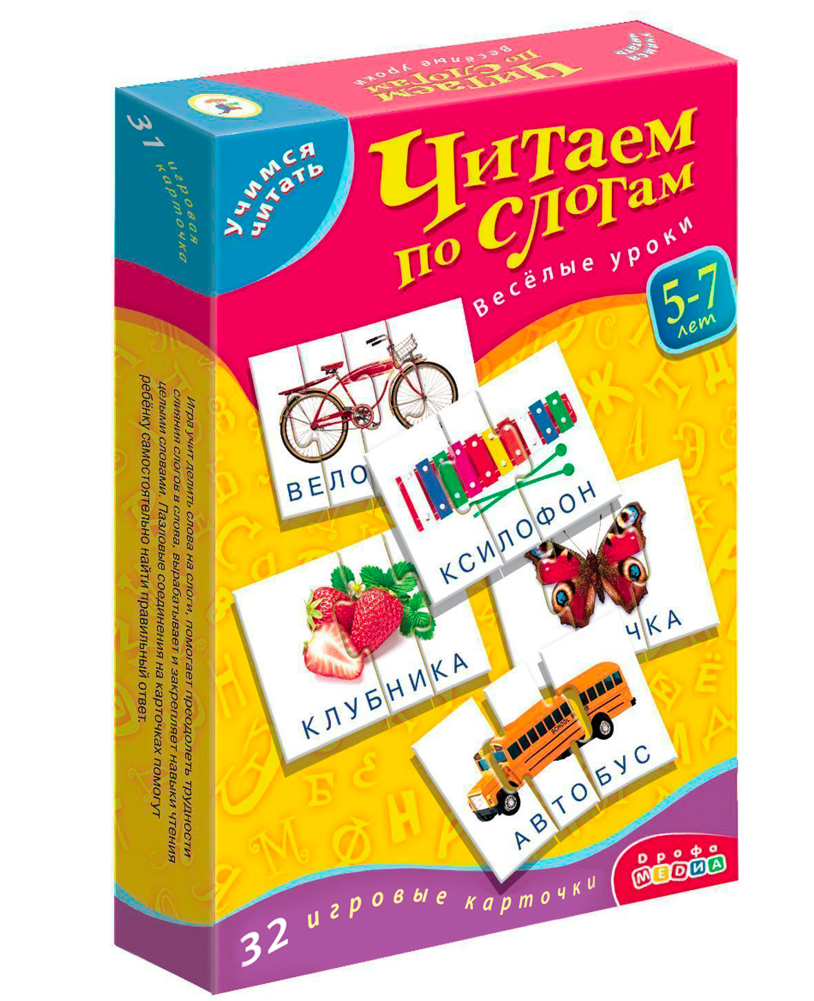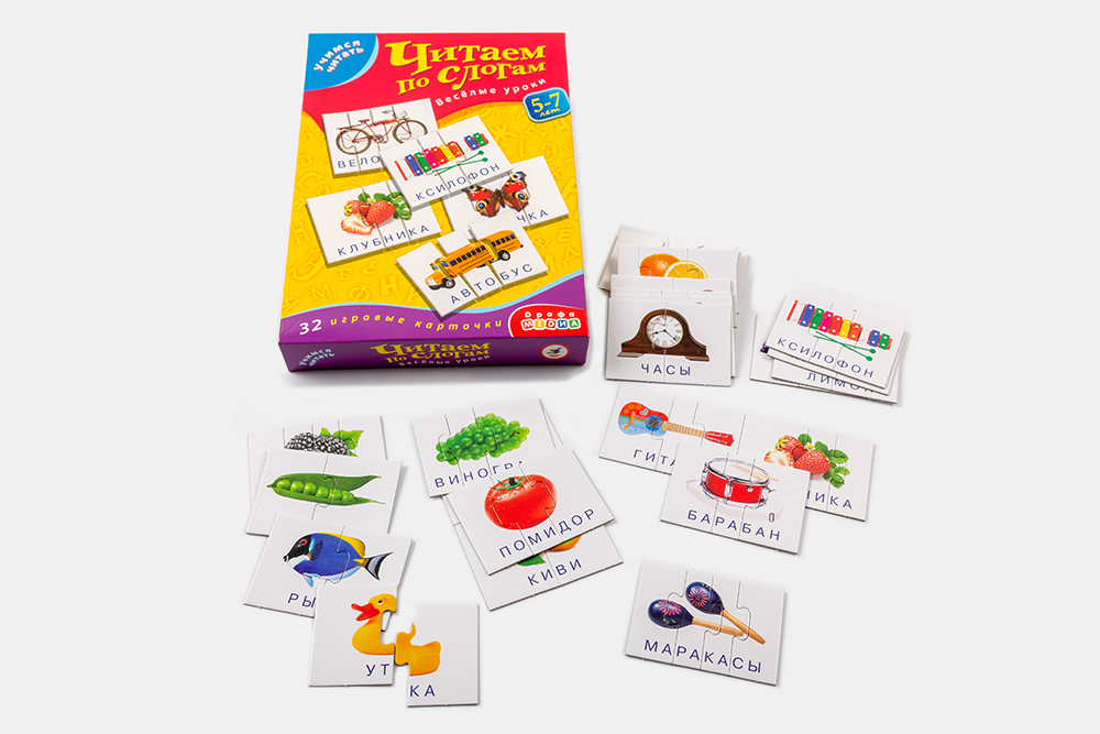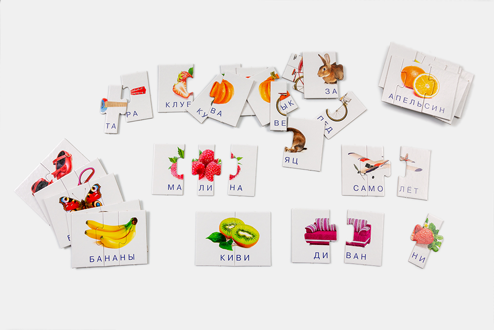 Игра учит читать по слогам и делить слова на слоги, тренирует навыки звуко-буквенного анализа, развивает мышление, орфографическую зоркость, навык чтения целыми словами. Задача игрока — составить изображение предмета из 2-4 частей и прочитать слово. Игру можно использовать как дидактическое пособие на индивидуальных развивающих и коррекционных занятиях.