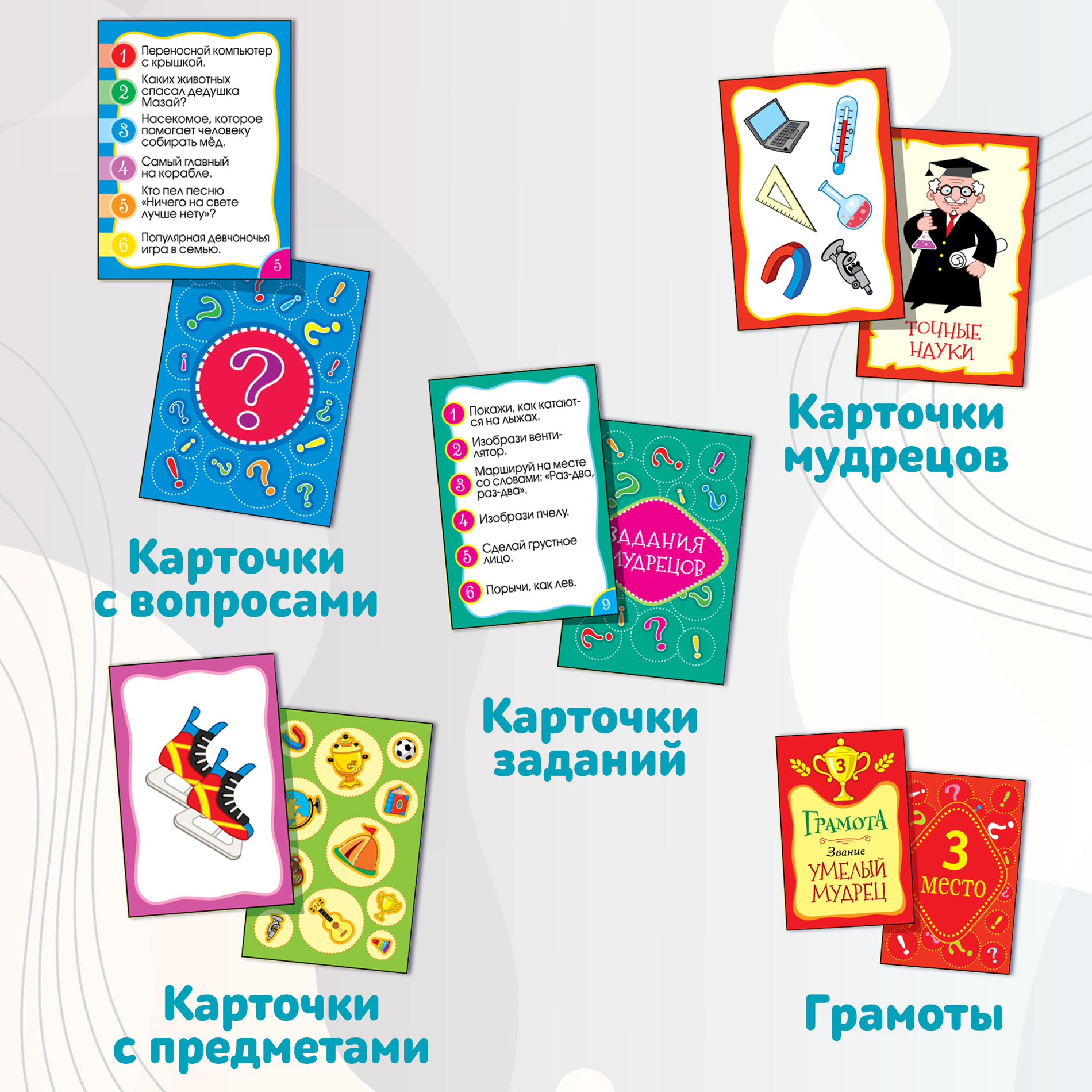 Размер карточки с вопросами (100 штук): 5,9х7,9 см