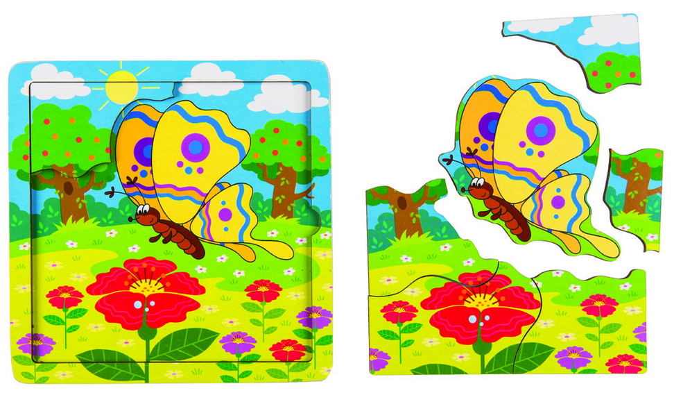 Игра из дерева «Бабочка» — развивающий деревянный пазл, который был разработан для занятий с детьми от 2 лет. Пазл состоит из 7 деталей.