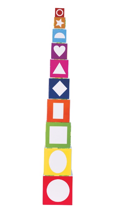 В этом наборе все кубики разного размера. Поставьте один на другой от больших к маленьким – и получится пирамида. В процессе игры ребенок будет учиться понятию размеров и логики. Ведь если поставить друг на друга кубики не того размера, пирамида попросту упадет.