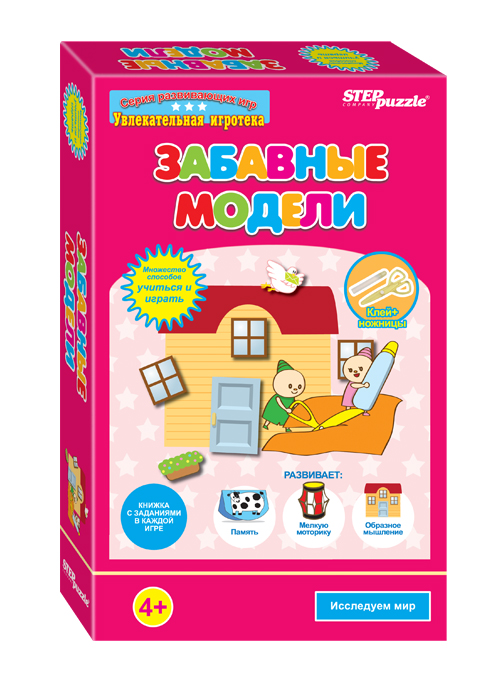 «Забавные модели» - это игра-аппликация. В коробочке Вы найдете клей – 1 шт., ножницы – 1 шт., красочную инструкцию с аппликациями и подробными методическими указаниями.